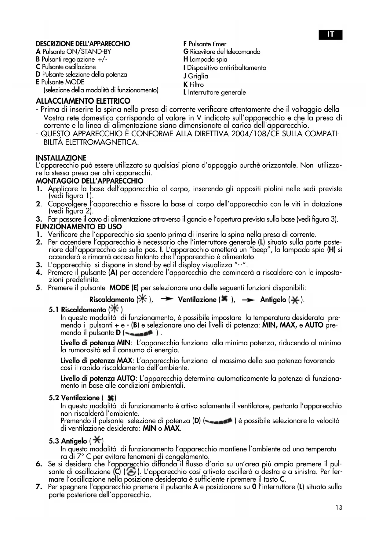 2. Per accendere l’apparecchio è necessario che l’interruttore generale (L) situato sulla parte poste-
