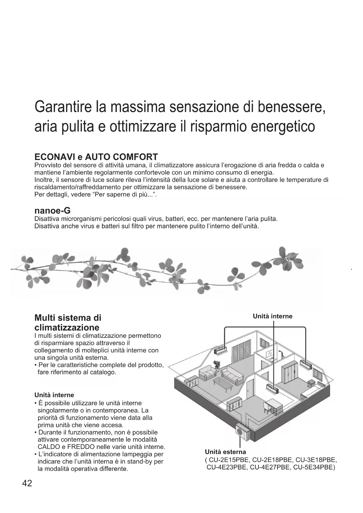 ECONAVI e AUTO COMFORT Provvisto del sensore di attività umana, il climatizzatore assicura l’erogazione di aria fredda o calda e