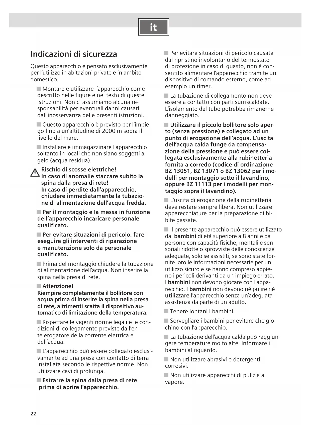 ■ Prima di qualsiasi intervento sull’apparecchio estrarre la spina dalla presa di rete e chiudere l’alimentazione dell’acqua.
