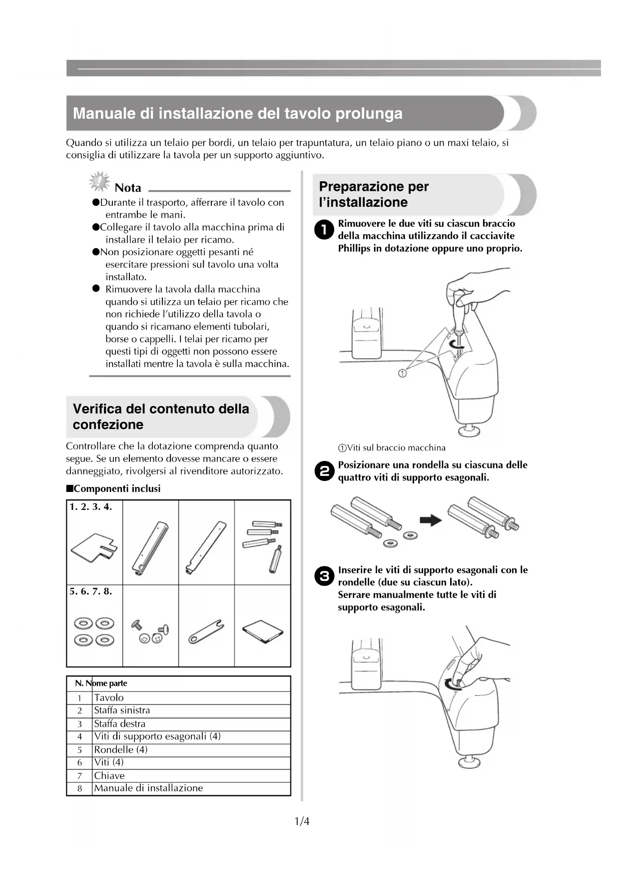 Manuale di installazione del tavolo prolunga