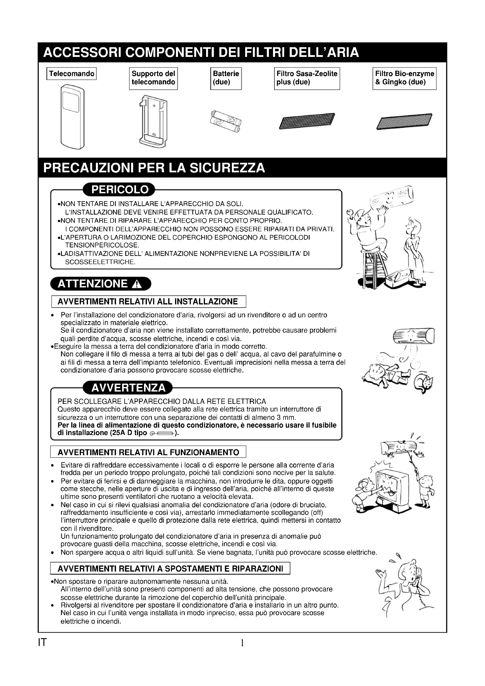 - Prima di dare inizio al funzionamento del condizionatore d’aria. Il manuale racchiude istruzioni importanti per l’uso quotidiano.