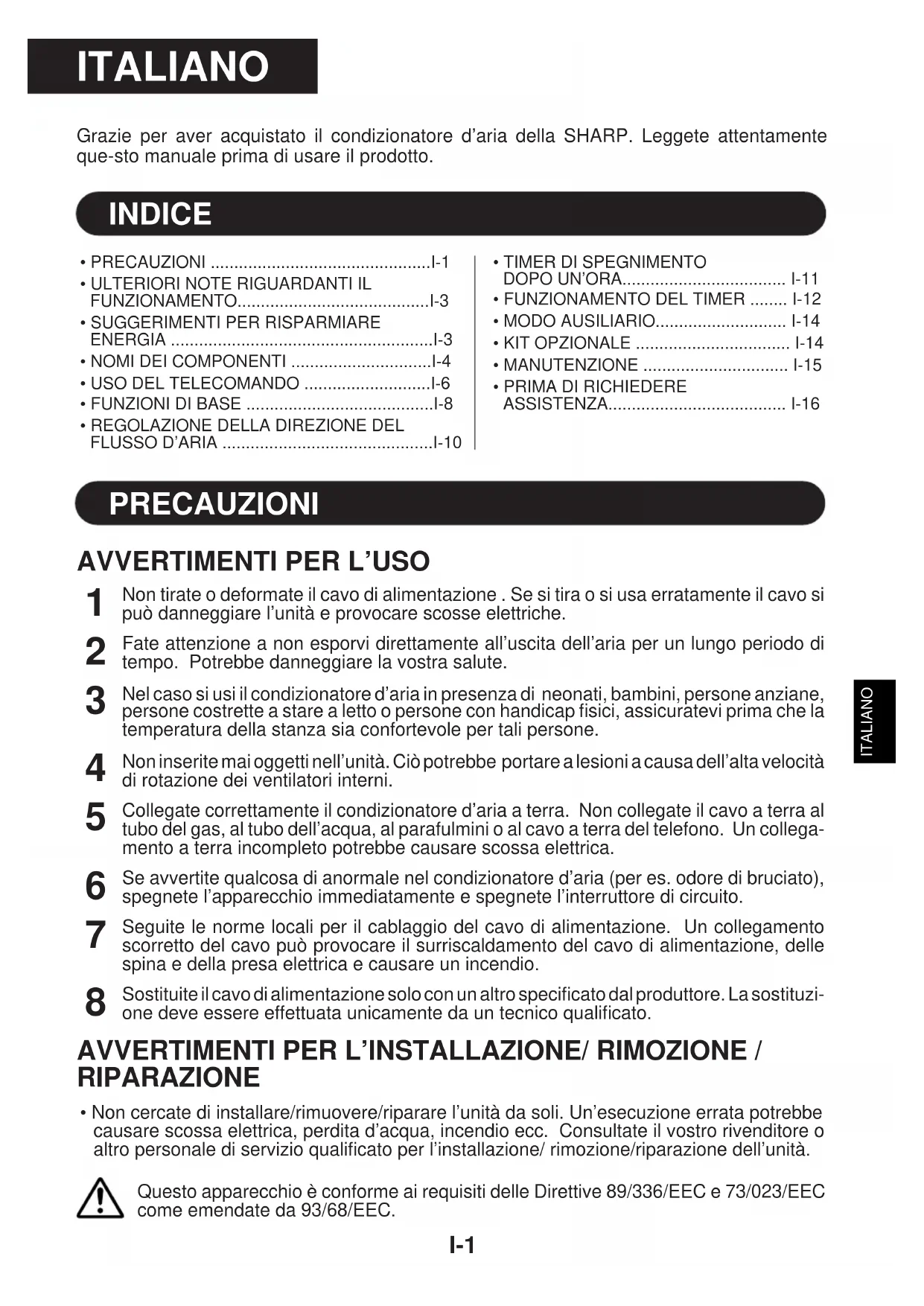MANUALE UTENTE AEA07BE SHARP