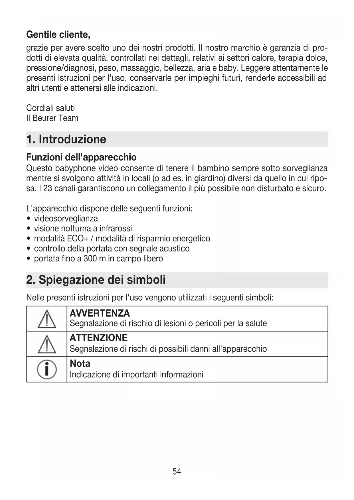 Gentile cliente, grazie per avere scelto uno dei nostri prodotti. Il nostro marchio è garanzia di pro- dotti di elevata qualità, controllati nei dettagli, relativi ai settori calore, terapia dolce, pressione/diagnosi, peso, massaggio, bellezza, aria e baby. Leggere attentamente le presenti istruzioni per l'uso, conservarle per impieghi futuri, renderle accessibili ad altri utenti e attenersi alle indicazioni. Cordiali saluti Il Beurer Team