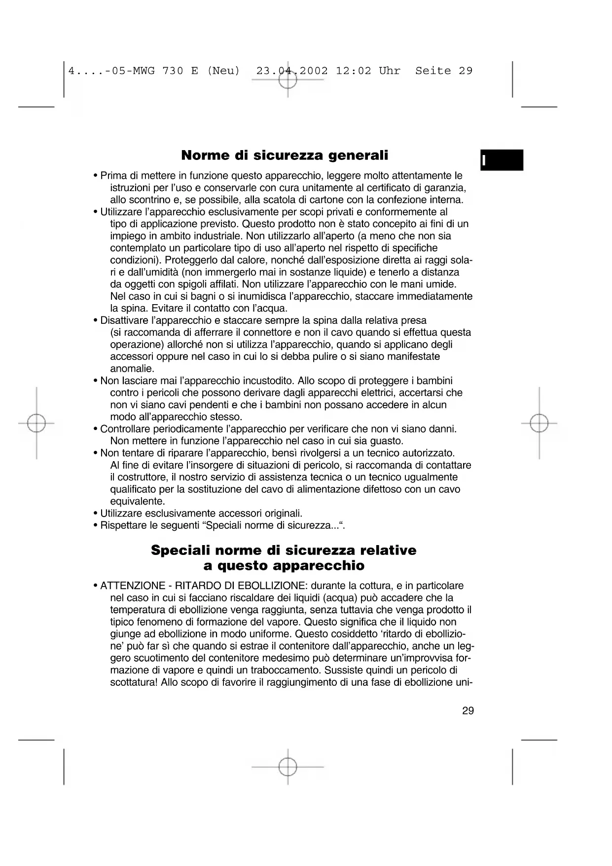 4....-05-MWG 730 E (Neu) 23.04.2002 12:02 Uhr Seite 30vengano rilevati dei danni di qualunque genere, si raccomanda di non mettere in nessun caso in funzione l’apparecchio.