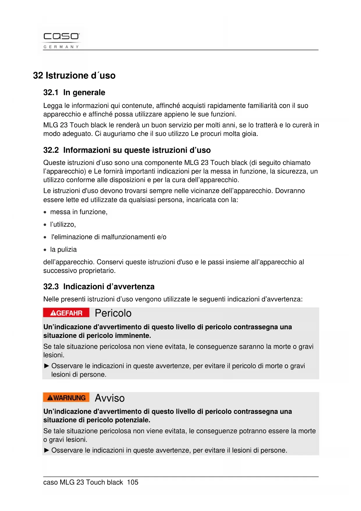 Trova gratuitamente il manuale del dispositivo MLG 23 Touch CASO in formato PDF.