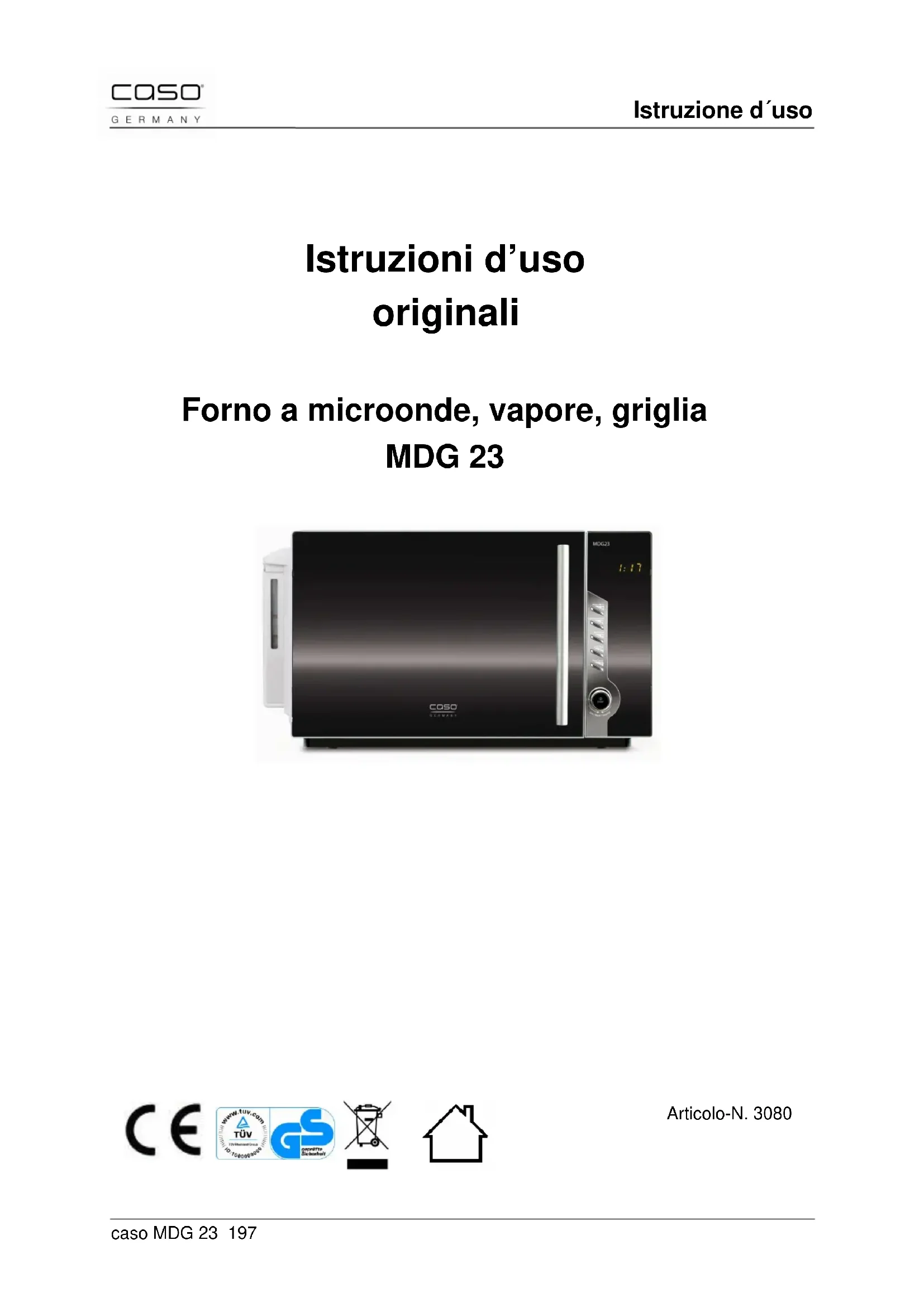MDG 23 3080 - Microonde CASO - Manuale utente e istruzioni gratuiti