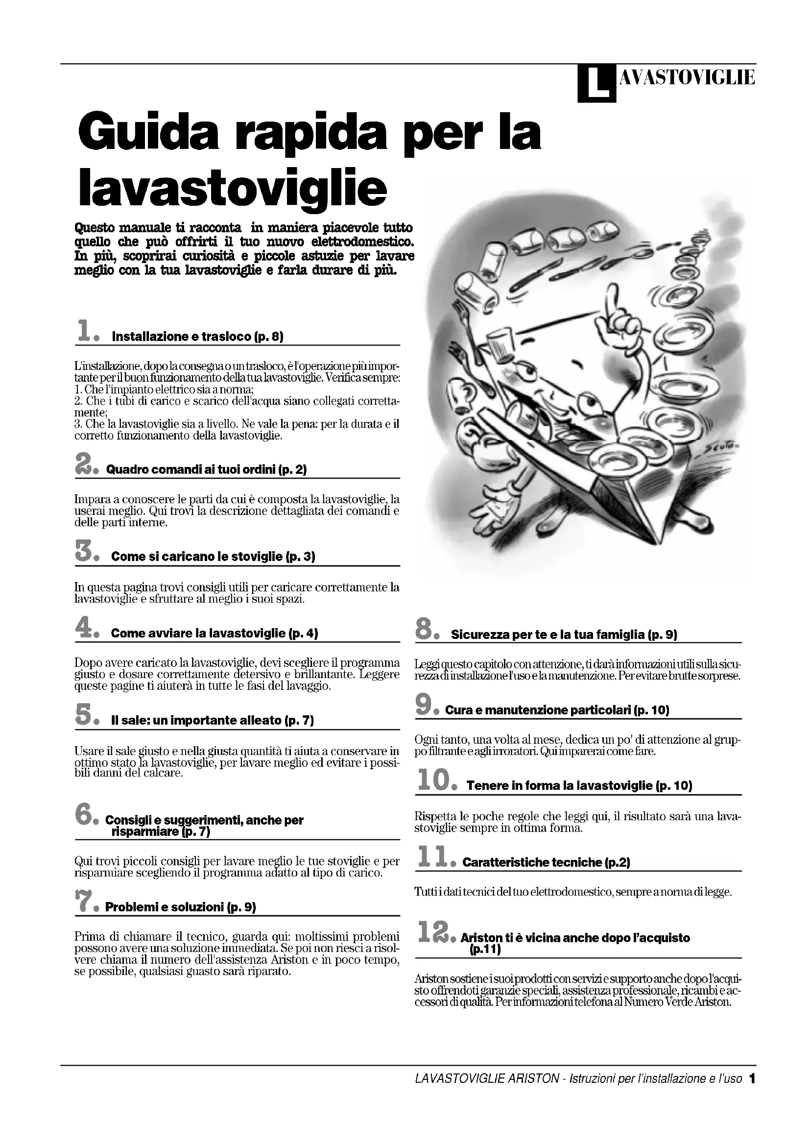 (p.11)Ariston sostiene i suoi prodotti con servizi e supporto anche dopo l'acqui-sto offrendoti garanzie speciali, assistenza professionale, ricambi e ac-cessori di qualità. Per informazioni telefona al Numero Verde Ariston.L AVASTOVIGLIE