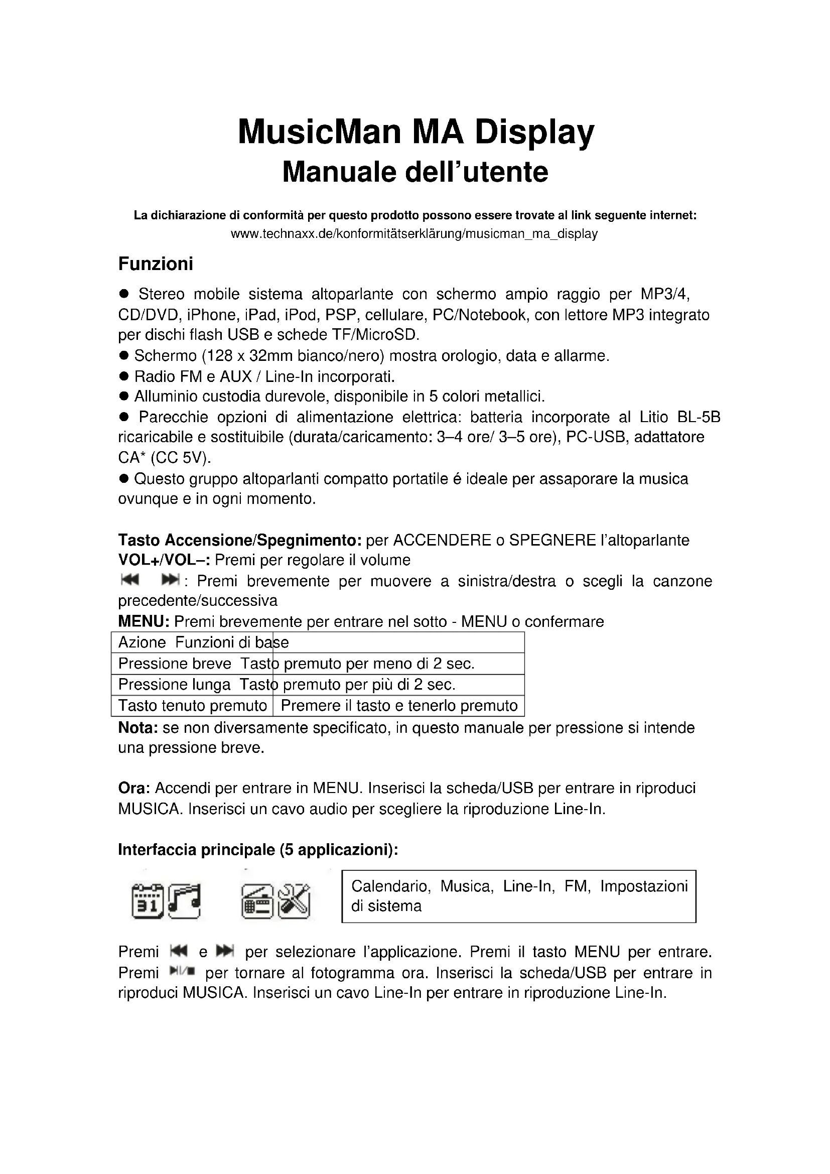 MusicMan MA Display - Altoparlante TECHNAXX - Manuale utente e istruzioni gratuiti