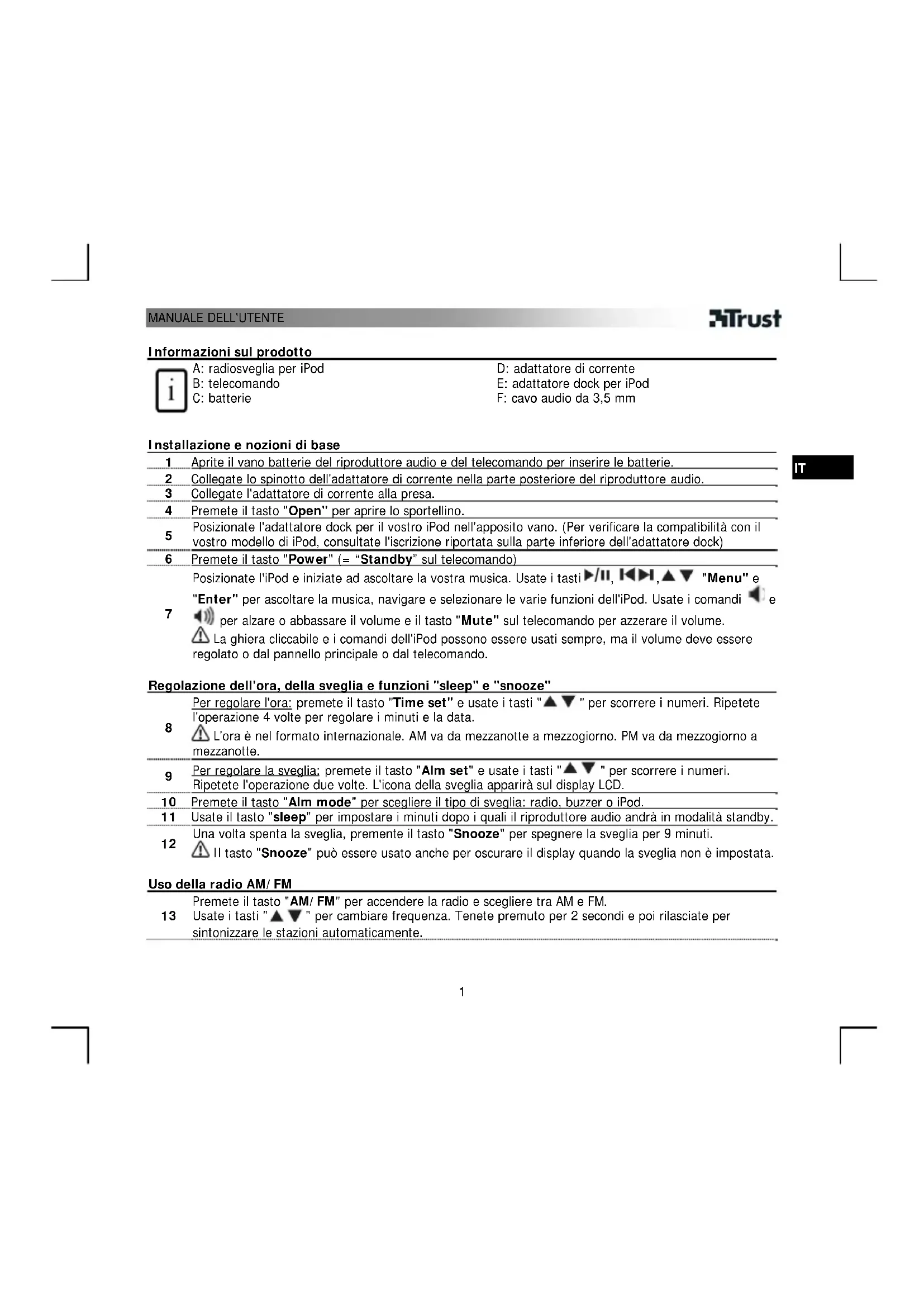 SP2993 - Radio sveglia TRUST - Manuale utente e istruzioni gratuiti