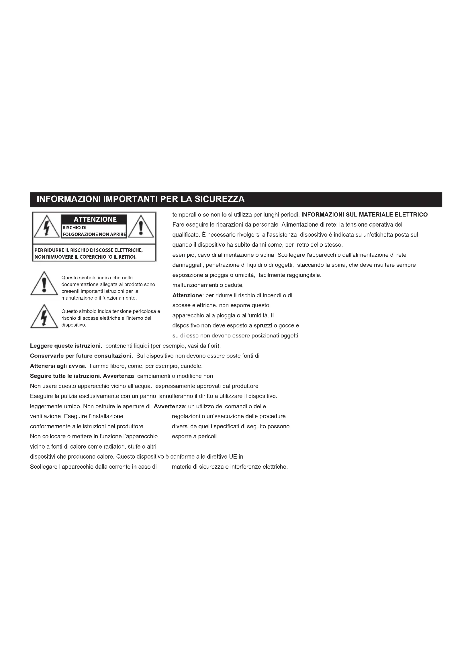 INFORMAZIONI IMPORTANTI PER LA SICUREZZA