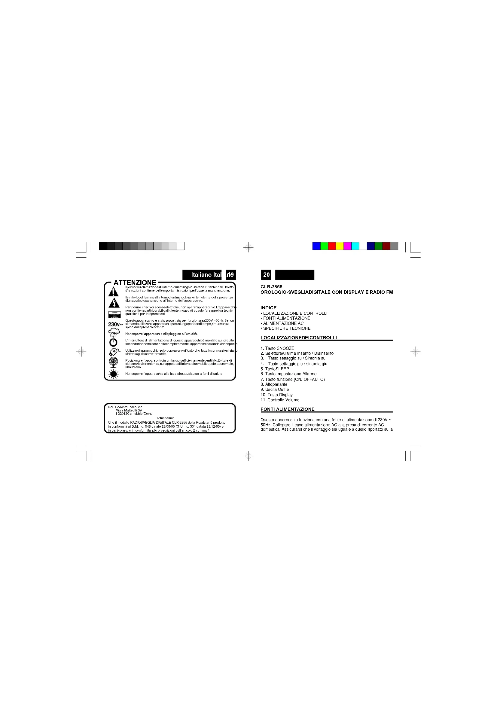 Nota: Quanda si imposta l'Orologio o la Sveglia ricordare que esta radiosveglia possiè un orologio a 24 ore.