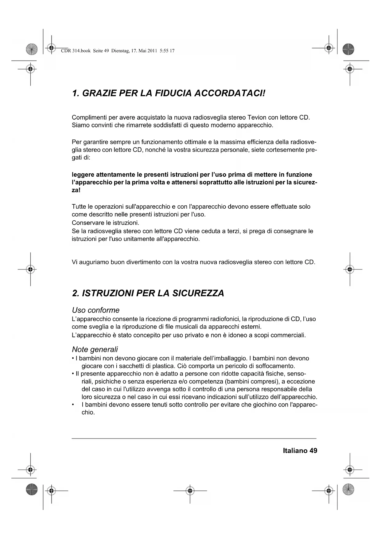 - I bambini devono essere tenuti sotto controllo per evitare che giochino con l'apparec- chio. CDR 314.book Seite 49 Dienstag, 17. Mai 2011 5:55 1750 Italiano