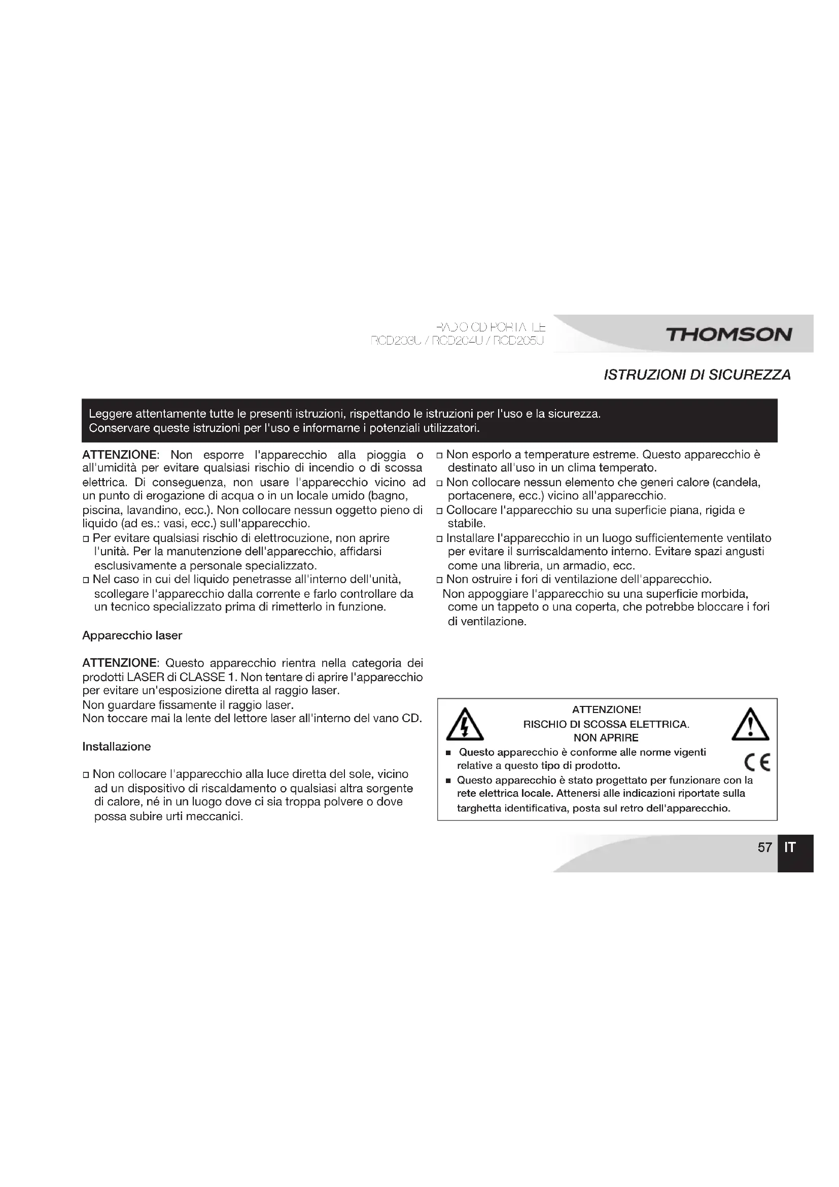 de acuerdo con la llamada a operadora tasa www.thomsonaudiovideo.eu57 Leggere attentamente tutte le presenti istruzioni, rispettando le istruzioni per l'uso e la sicurezza. Conservare queste istruzioni per l'uso e informarne i potenziali utilizzatori.