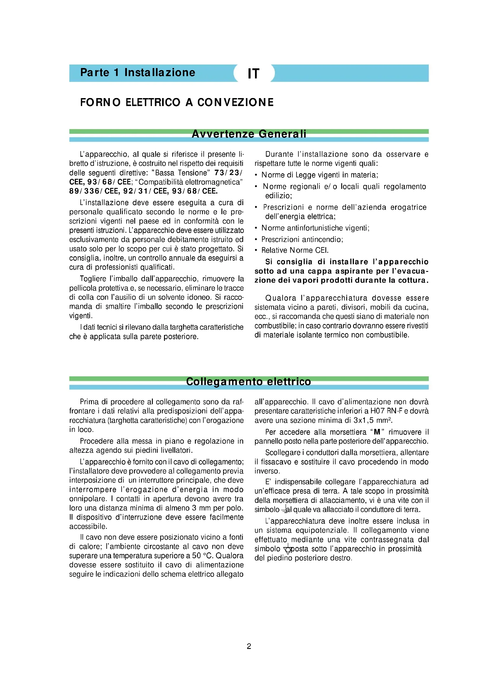 - Relative Norme CEI. Si consiglia di installare l’apparecchio sotto ad una cappa aspirante per l’evacua- zione dei vapori prodotti durante la cottura. Qualora l’apparecchiatura dovesse essere sistemata vicino a pareti, divisori, mobili da cucina, ecc., si raccomanda che questi siano di materiale non combustibile; in caso contrario dovranno essere rivestiti di materiale isolante termico non combustibile. all’apparecchio. Il cavo d’alimentazione non dovrà presentare caratteristiche inferiori a H07 RN-F e dovrà avere una sezione minima di 3x1,5 mm
