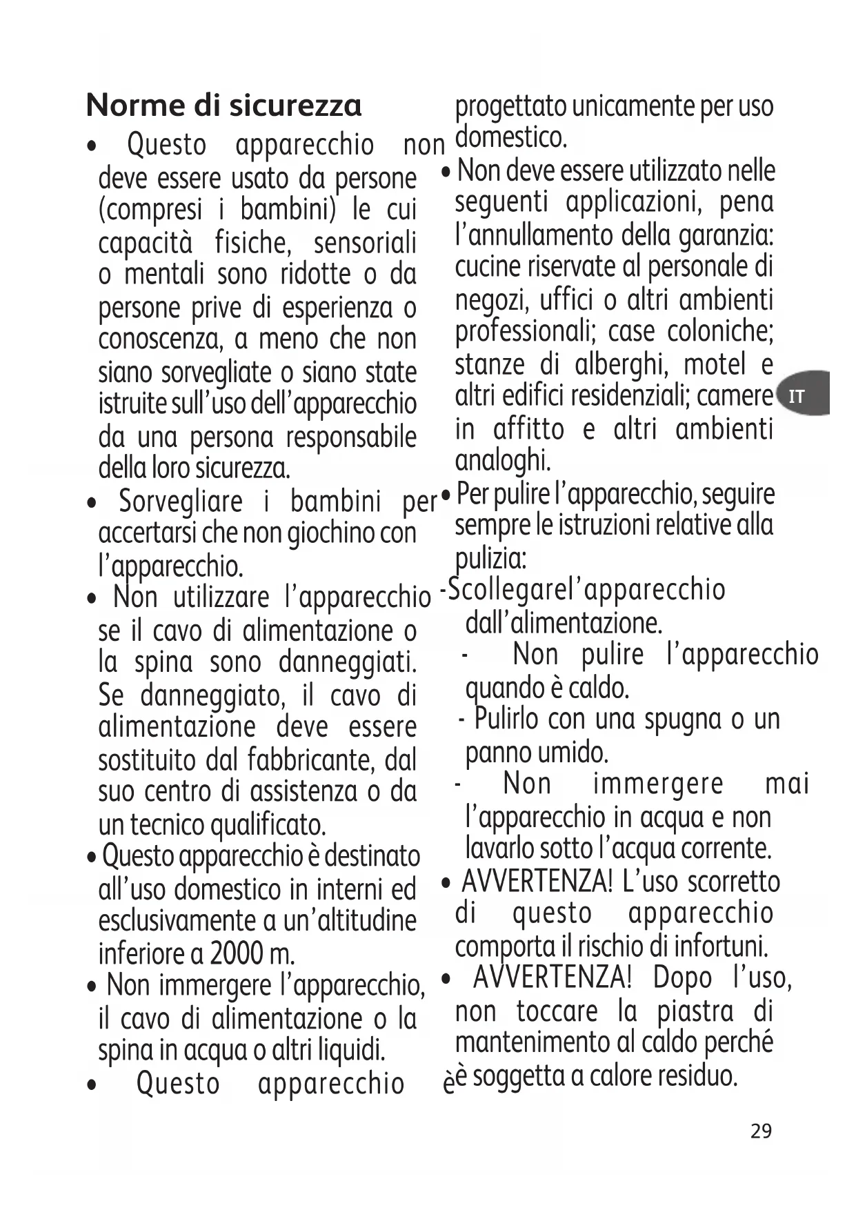 - AVVERTENZA! Dopo l’uso, non toccare la piastra di mantenimento al caldo perché è soggetta a calore residuo.30