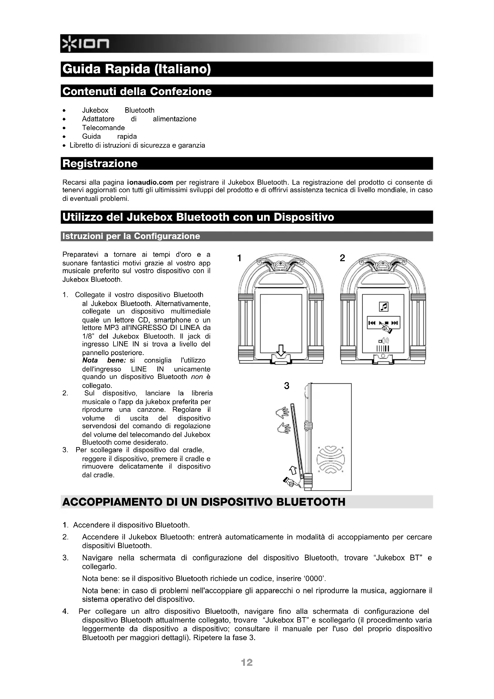 MANUALE UTENTE Jukebox Bluetooth ION
