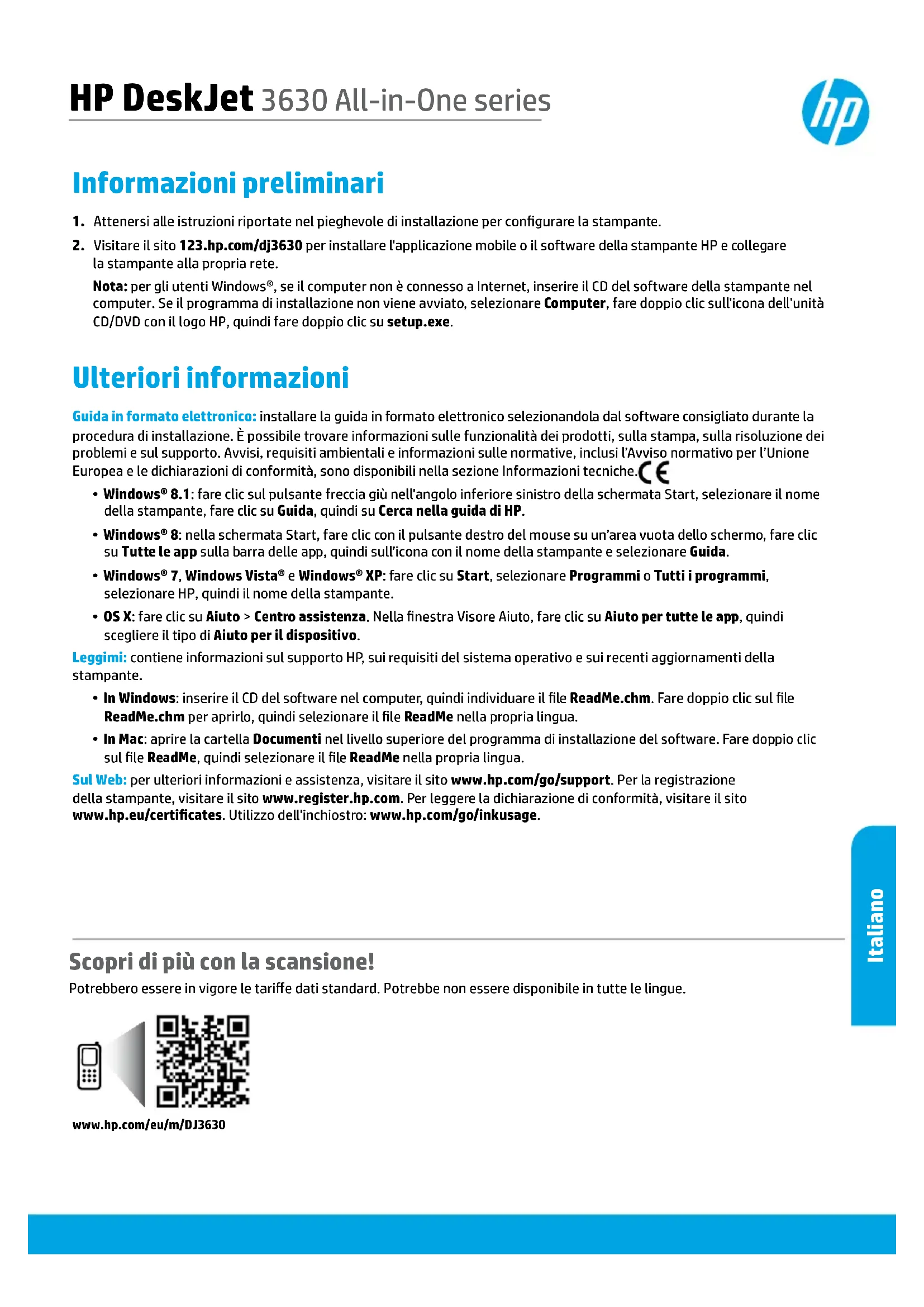 Scarica le istruzioni per il tuo Stampante in formato PDF gratuitamente! Trova il tuo manuale DeskJet 3634 AllinOne - HP e riprendi in mano il tuo dispositivo elettronico. In questa pagina sono pubblicati tutti i documenti necessari per l'utilizzo del tuo dispositivo. DeskJet 3634 AllinOne del marchio HP.