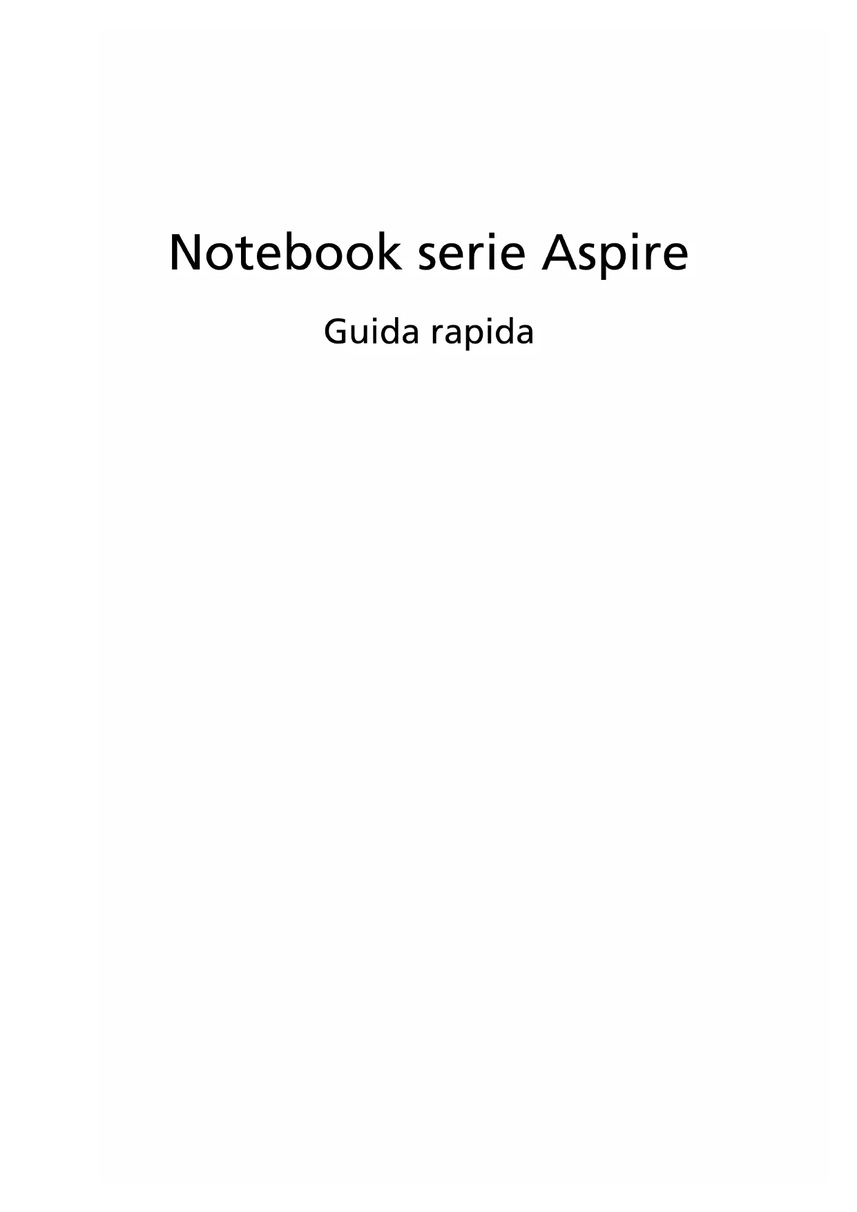 4Notebook serie Aspire Guida rapidaNumero di modello: _______________________________ Numero di serie: ___________________________________ Data di acquisto: __________________________________ Luogo d'acquisto: __________________________________ © 2010 Tutti i diritti riservati. Guida rapida per Notebook serie Aspire Prima edizione: 07/20103 Avvertenze preliminari Grazie per aver scelto il notebook Acer, la scelta ideale per poter lavorare in piena libertà anche in movimento. Le guide disponibili Sono state realizzate delle guide per assistere l’utente nell’uso del notebook Acer: Innanzitutto, il manifesto aiuta a semplificare la cofnigurazione del computer. La Manuale utente generale Aspire contiene informazioni utili per tutti i modelli della serie Aspire. Copre gli argomenti base come ad esempio l’uso della tastiera, audio, ecc. A causa della sua natura, la Manale utente generale cosi come il AcerSystem User Guide menzionata in precedenza a volte fa riferimento a funzioni o caratteristiche presenti solamente in alcuni modelli della serie, ma non necessariamente del modello acquistato. Per questo motivo alcuni elementi nel testo sono indicati con "solo per alcuni modelli". Guida rapida vi presenta le caratteristiche e le funzioni principali del vostro nuovo computer. Per altre nozioni su come il vostro computer può aiutarvi a diventare ancora più produttivi, consultate la AcerSystem User Guide. Questa guida contiene informazioni dettagliate su argomenti come utilità del sistema, ripristino dei dati, opzioni di espansione e ricerca guasti. In aggiunta contiene le informazioni sulla garanzia e i regolamenti generali e le avvertenze per la sicurezza del vostro notebook. È disponibile nel formato PDF (Portable Document Format) e viene fornita già caricata nel notebook. Per accedervi seguite questi passaggi: 1 Fare clic su Start > Programmi > AcerSystem. 2 Fare clic su AcerSystem User Guide. Nota: Per visualizzare il file, è necessario che sul computer sia installato Adobe Reader. Se Adobe Acrobat Reader non è installato sul computer, fare clic su AcerSystem User Guide per eseguire il programma di installazione di Adobe Reader. Per completare l'installazione, attenersi alle istruzioni visualizzate sullo schermo. Per istruzioni sull'uso di Adobe Reader, consultare il menu Guida in linea e supporto tecnico.4 Italiano Presentazione del notebook Acer Dopo aver configurato il computer come illustrato nel foglietto di istruzioni relative alla configurazione, far riferimento alla presente documentazione per la presentazione del nuovo notebook Acer. Vista dall’alto