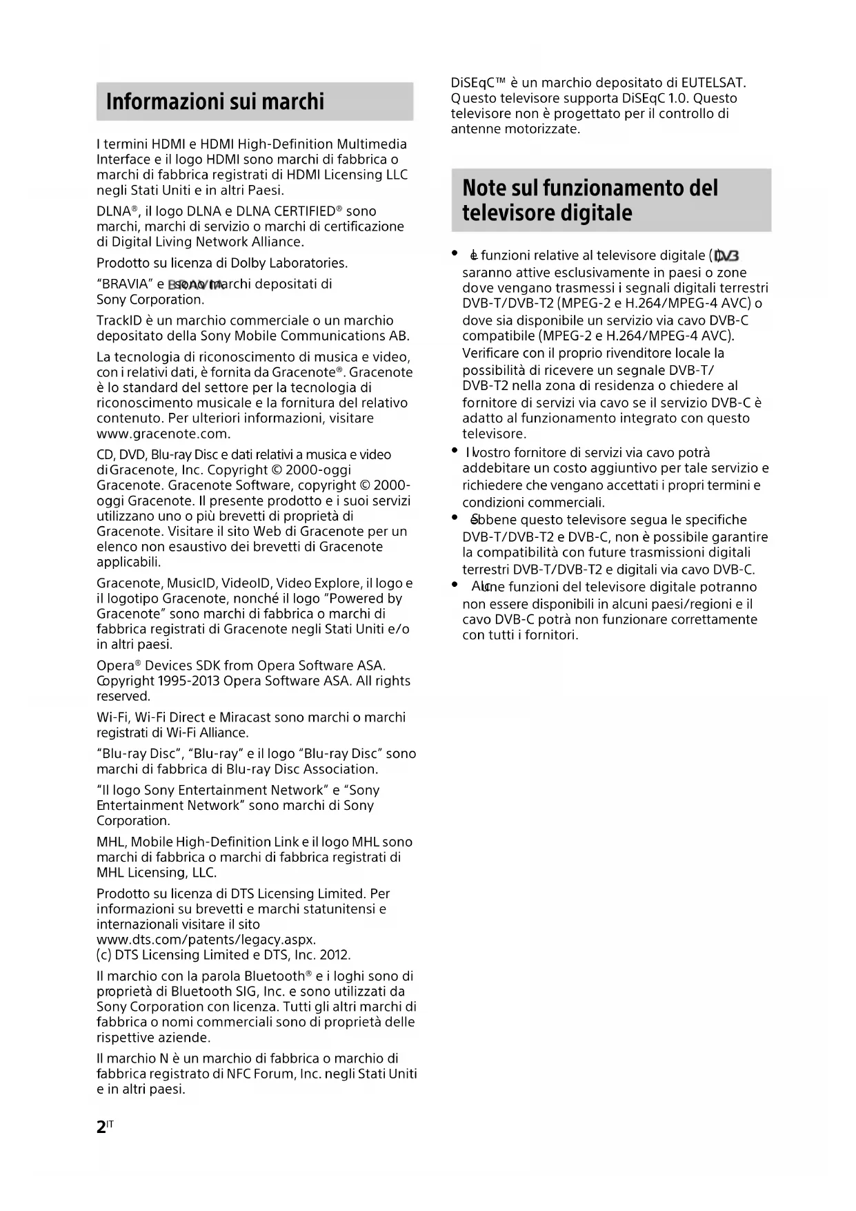 archi, marchi di servizio o marchi di certificazione di Digital Living Network Alliance. Prodotto su licenza di Dolby Laboratories. “BRAVIA” e sono marchi depositati di Sony Corporation. TrackID è un marchio commerciale o un marchio
