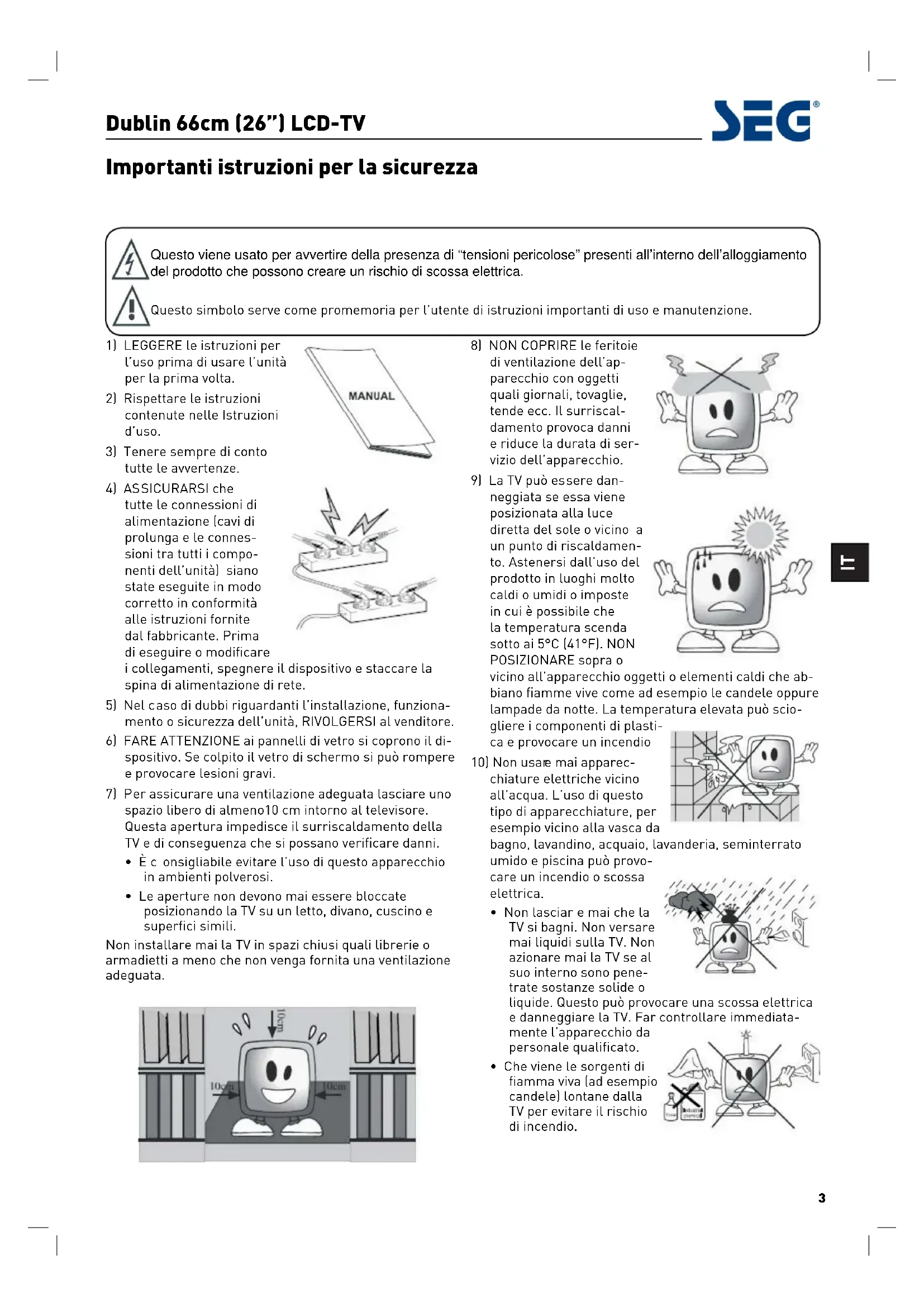 Scarica le istruzioni per il tuo Televisore in formato PDF gratuitamente! Trova il tuo manuale Dublin - SEG e riprendi in mano il tuo dispositivo elettronico. In questa pagina sono pubblicati tutti i documenti necessari per l'utilizzo del tuo dispositivo. Dublin del marchio SEG.