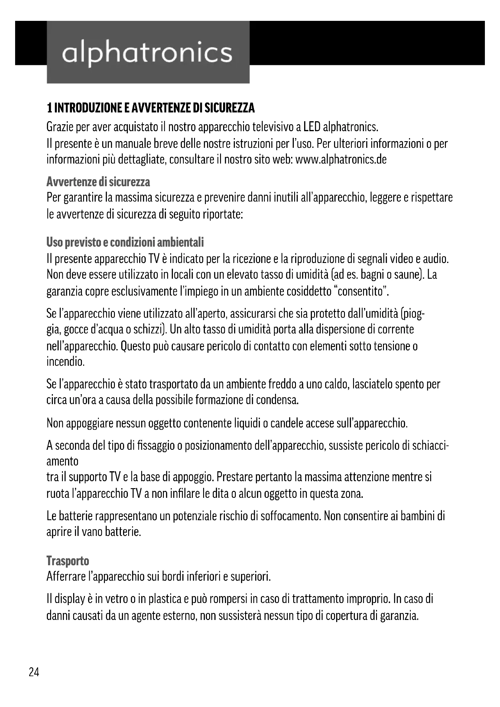 Il presente è un manuale breve delle nostre istruzioni per l'uso. Per ulteriori informazioni o per informazioni più dettagliate, consultare il nostro site web: www.alphatronics.de