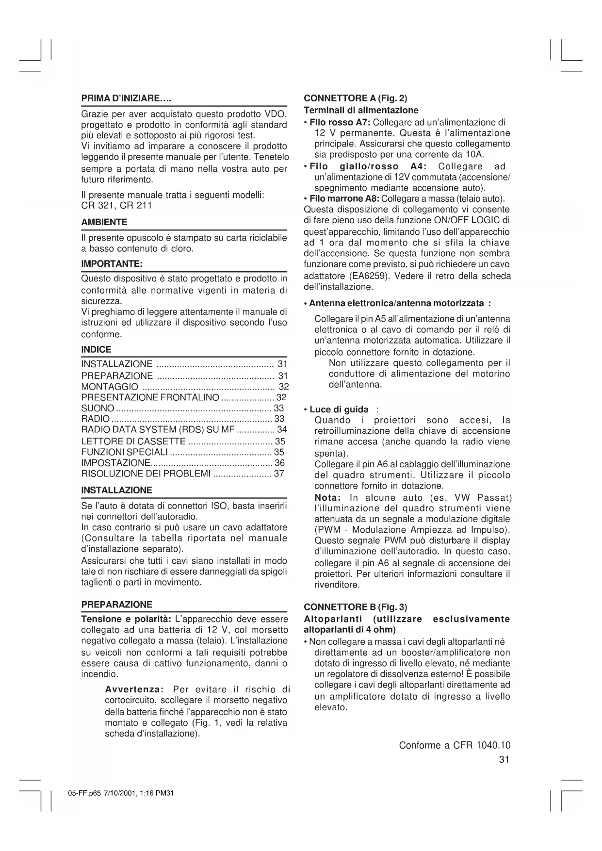 MANUALE UTENTE CD 441 VDO DAYTON
