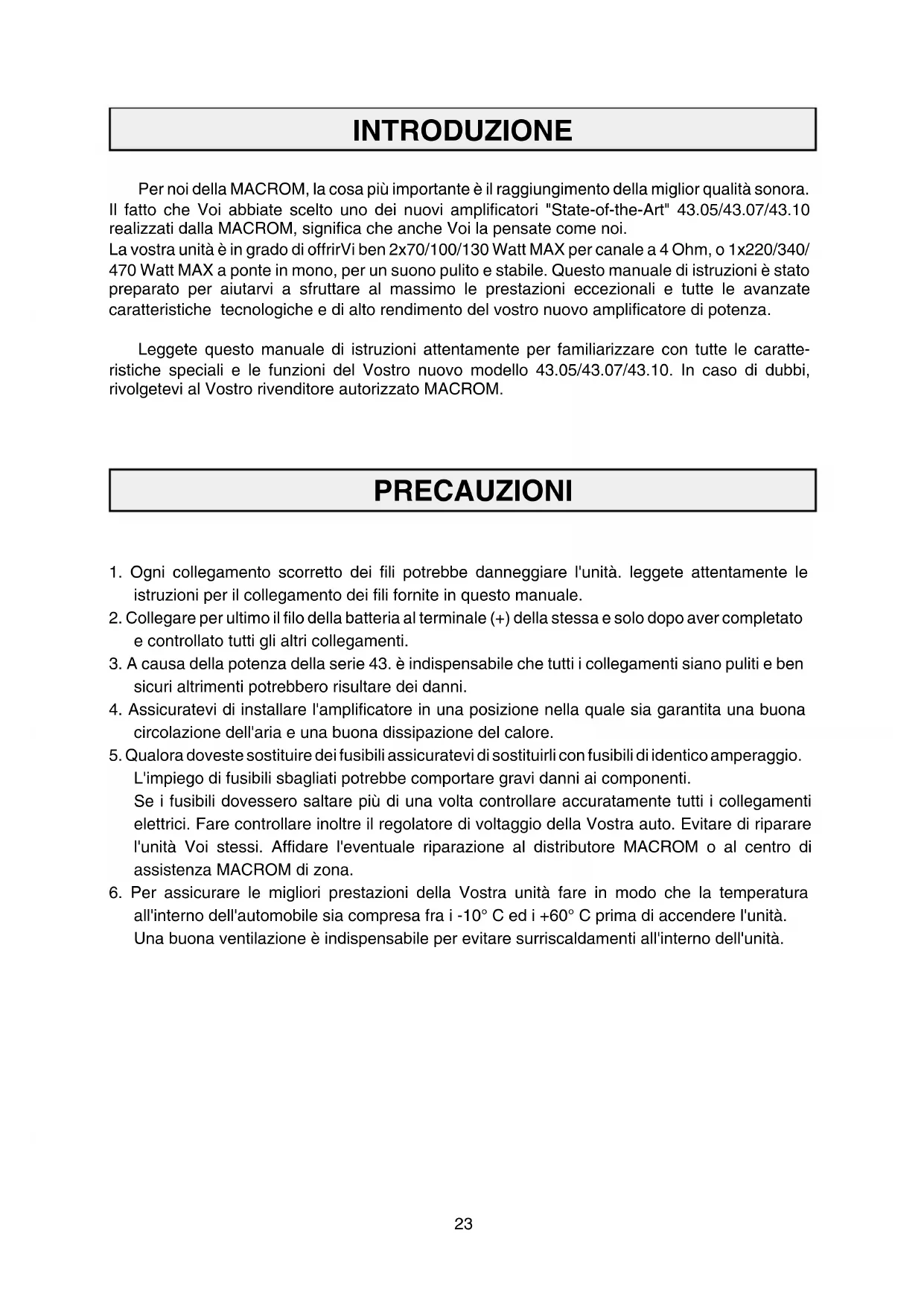 Leggete quello manuale di istruzioni attendamente per familiarizzare con tutte le caratteristiche speciali e le funzioni del Vostro nuovo modello 43.05/43.07/43.10. In caso di dubbi, rivolgetevi al Vostro rivenditore autorizzato MACROM.