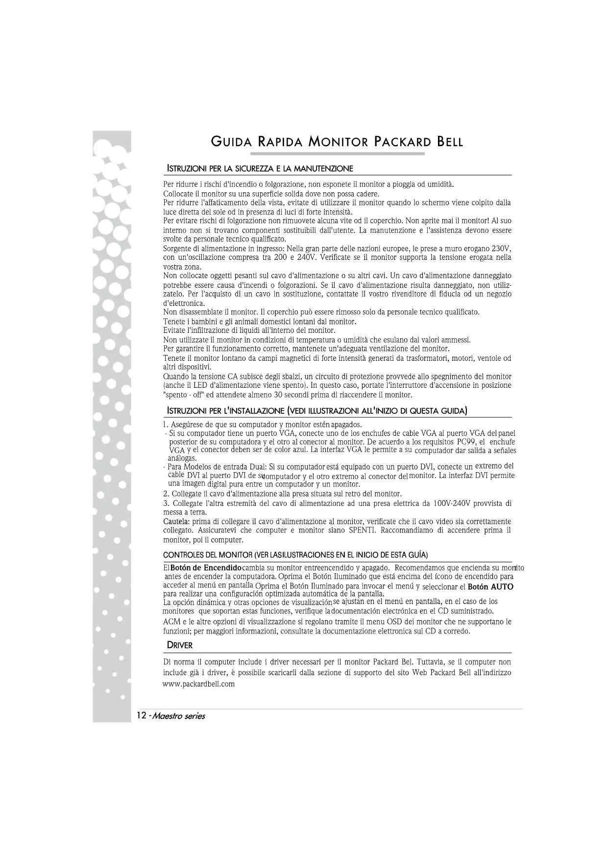 GUIDA RAPIDA MONITOR PACKARD BELL