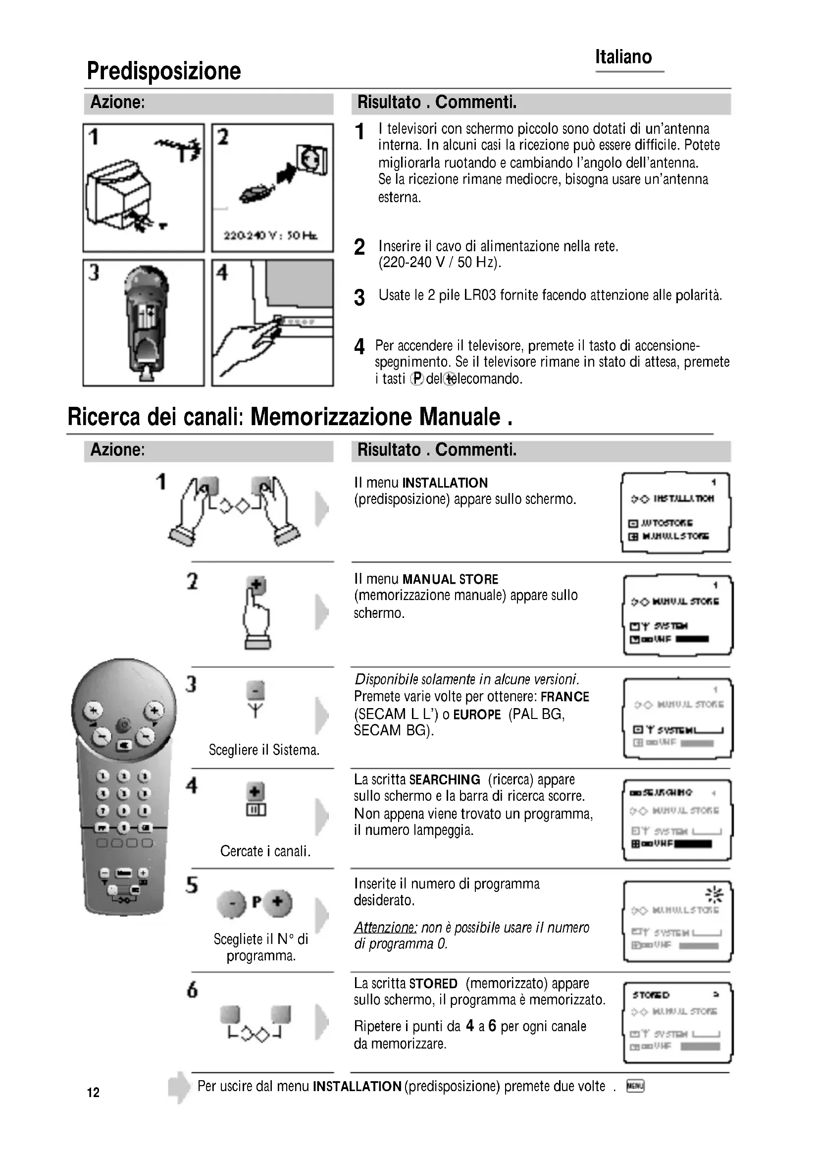Ricerca dei canali: Memorizzazione Manuale.