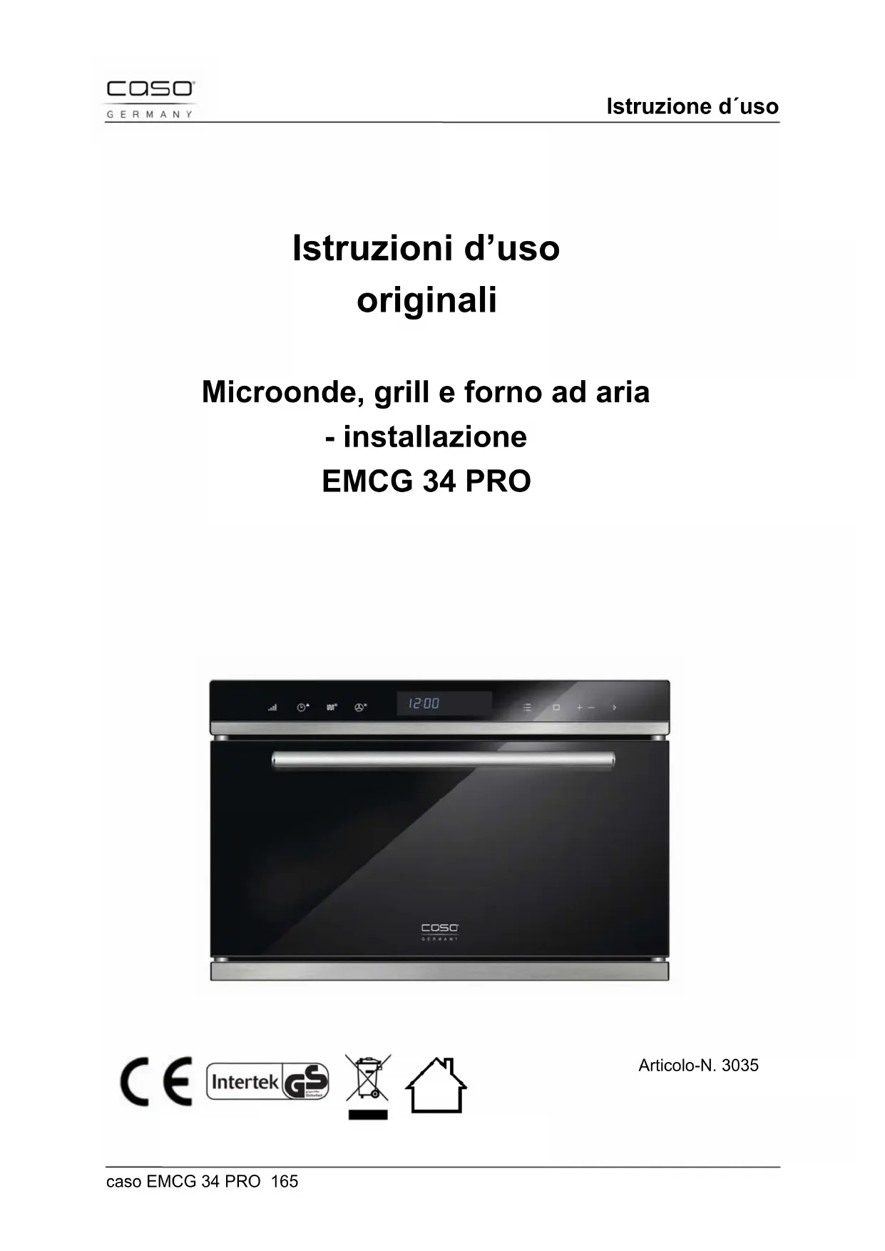 Scarica le istruzioni per il tuo Microonde in formato PDF gratuitamente! Trova il tuo manuale EMCG 34 Pro - CASO e riprendi in mano il tuo dispositivo elettronico. In questa pagina sono pubblicati tutti i documenti necessari per l'utilizzo del tuo dispositivo. EMCG 34 Pro del marchio CASO.