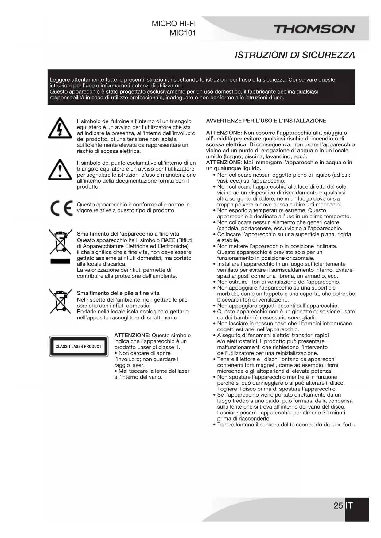 MANUALE UTENTE MIC101 THOMSON