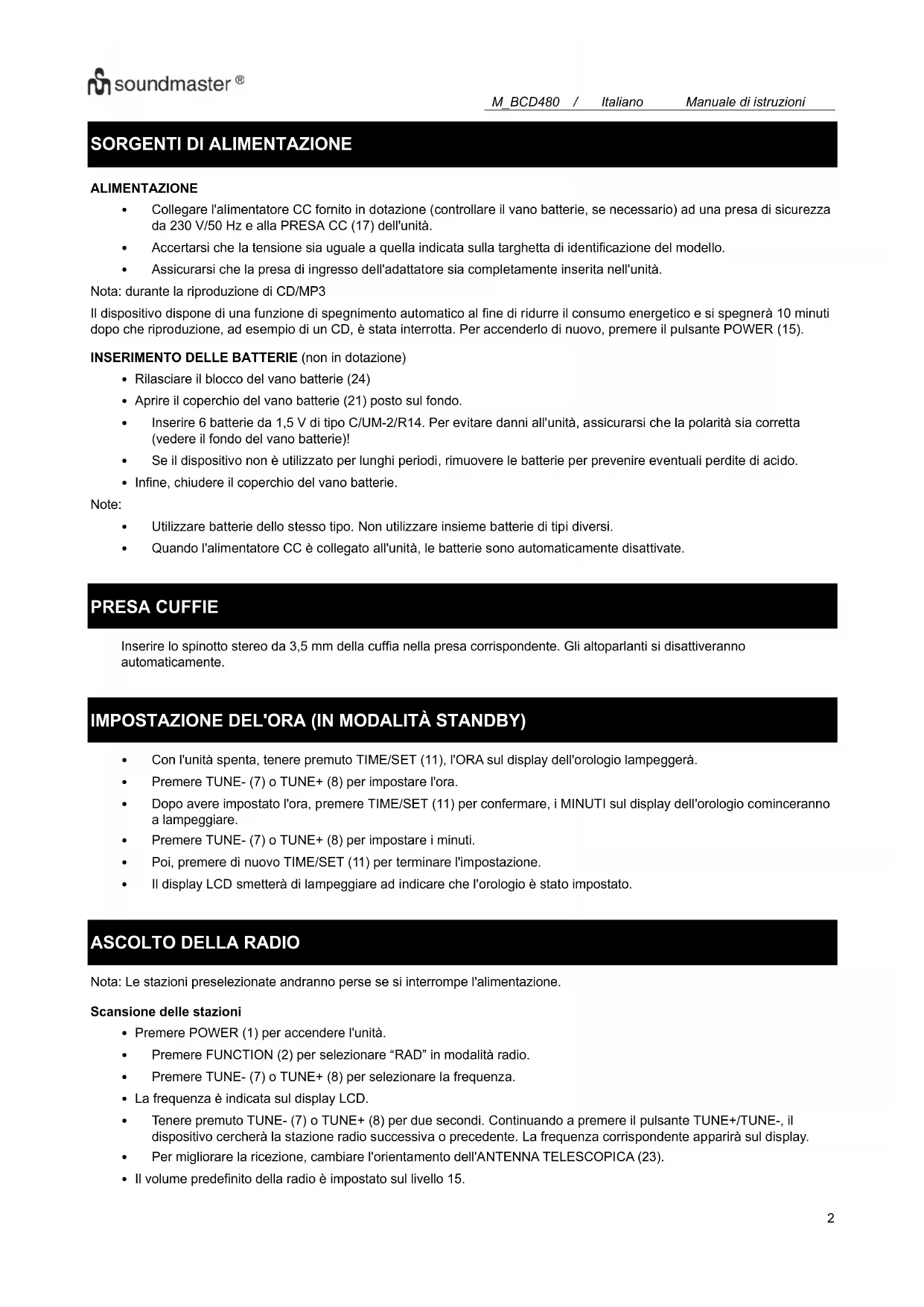 MANUALE UTENTE BCD480 Soundmaster