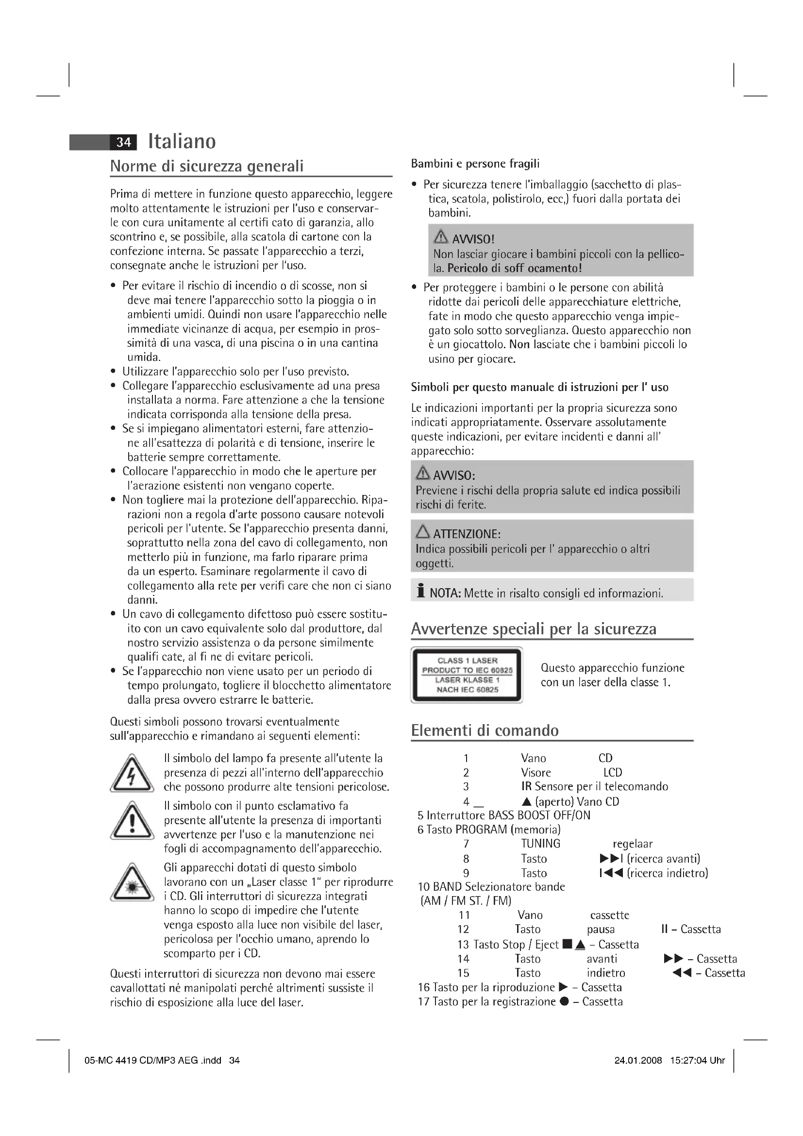 Scarica le istruzioni per il tuo Sistema hi-fi in formato PDF gratuitamente! Trova il tuo manuale MC 4419 - AEG e riprendi in mano il tuo dispositivo elettronico. In questa pagina sono pubblicati tutti i documenti necessari per l'utilizzo del tuo dispositivo. MC 4419 del marchio AEG.