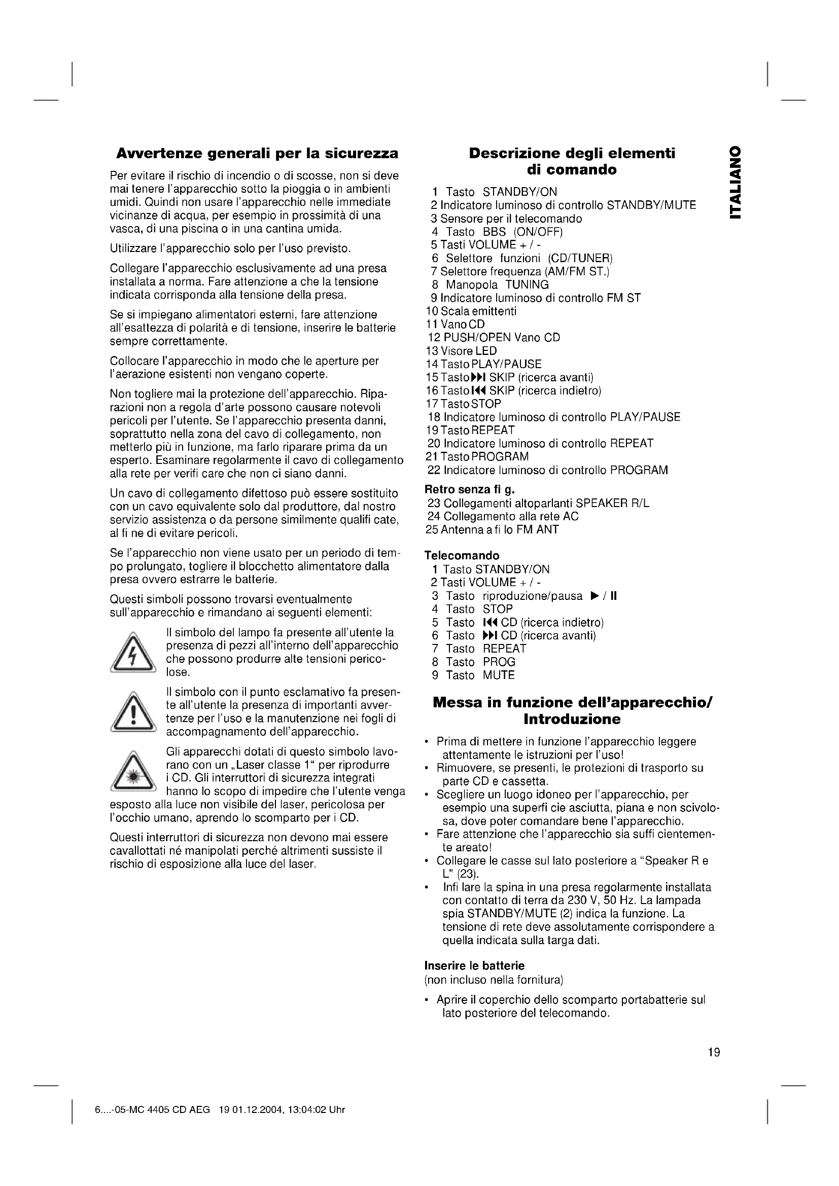 Scarica le istruzioni per il tuo Sistema hi-fi in formato PDF gratuitamente! Trova il tuo manuale MC 4405 CD - AEG e riprendi in mano il tuo dispositivo elettronico. In questa pagina sono pubblicati tutti i documenti necessari per l'utilizzo del tuo dispositivo. MC 4405 CD del marchio AEG.