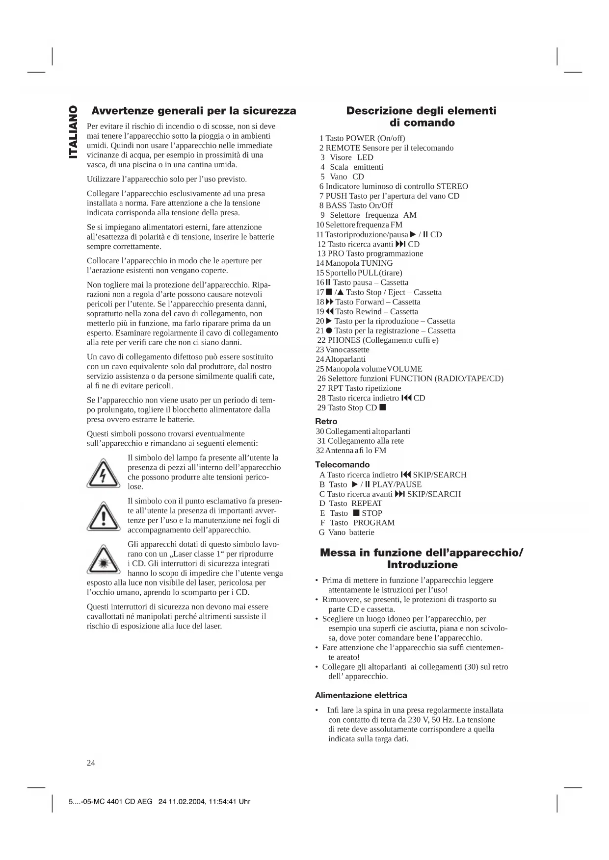 MANUALE UTENTE MC 4401 CD AEG