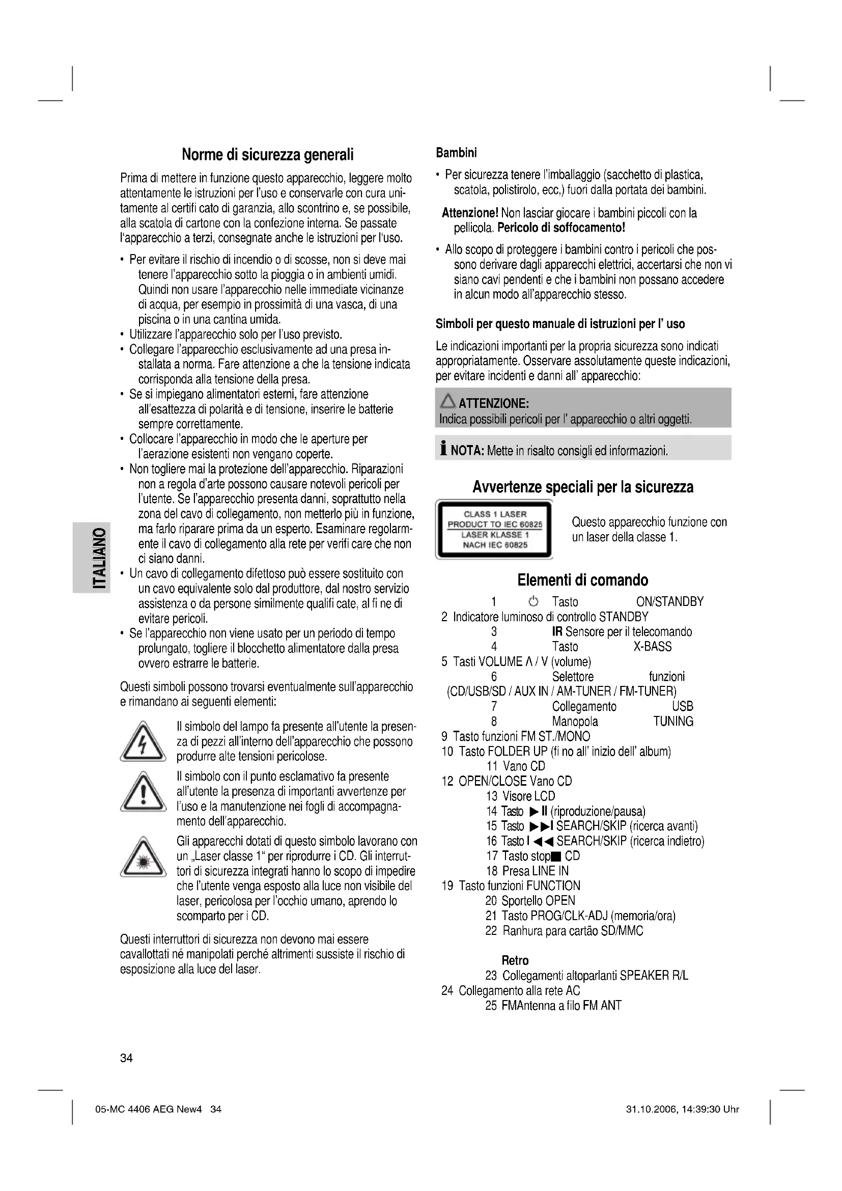 Scarica le istruzioni per il tuo Sistema hi-fi in formato PDF gratuitamente! Trova il tuo manuale MC 4406 CD - AEG e riprendi in mano il tuo dispositivo elettronico. In questa pagina sono pubblicati tutti i documenti necessari per l'utilizzo del tuo dispositivo. MC 4406 CD del marchio AEG.
