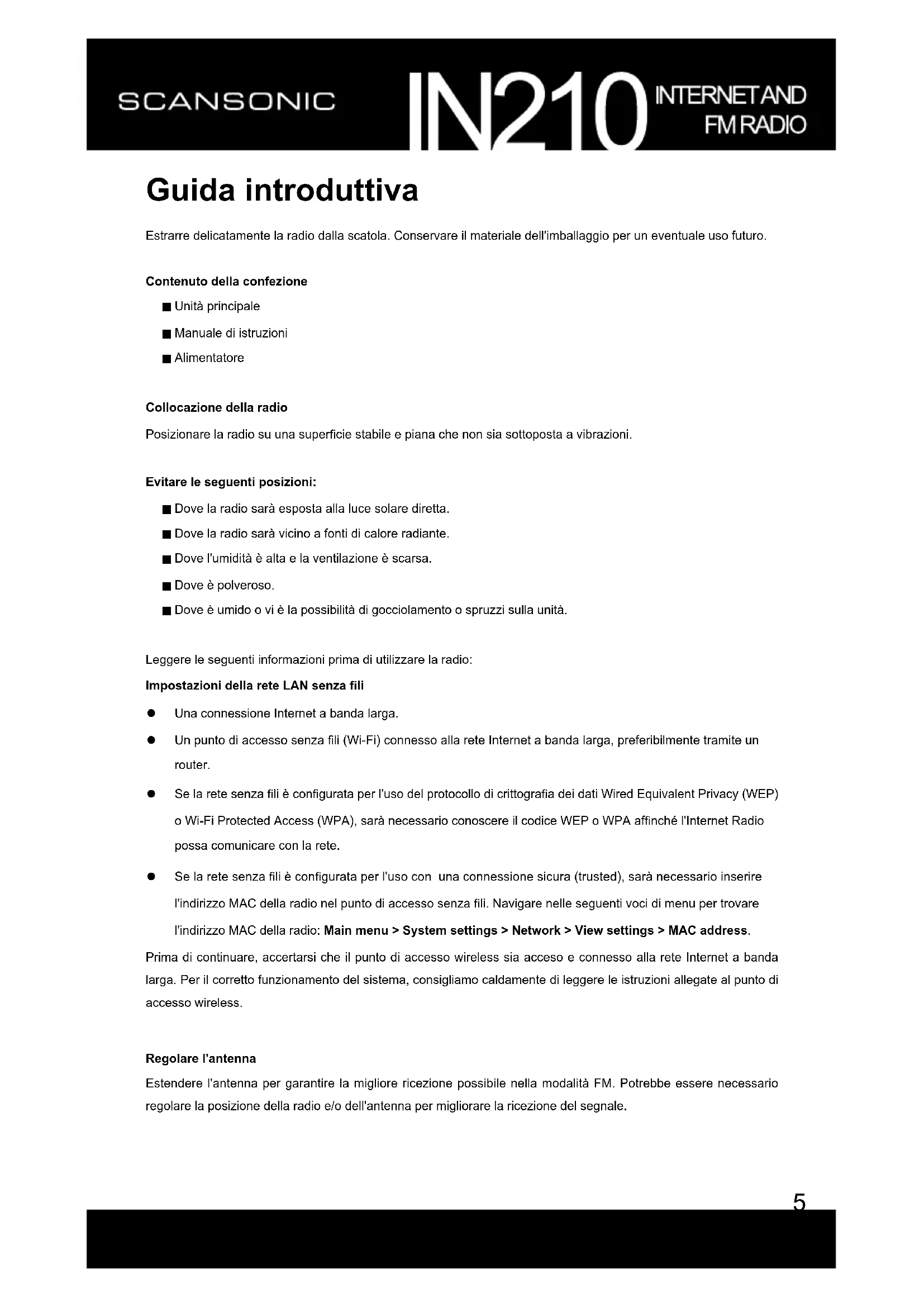 MANUALE UTENTE IN210 SCANSONIC