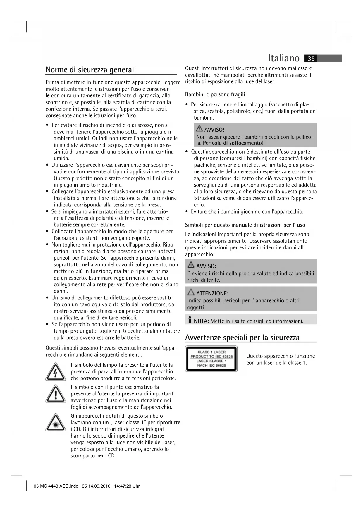 Scarica le istruzioni per il tuo Lettore/registratore cd in formato PDF gratuitamente! Trova il tuo manuale MC 4443 CD - AEG e riprendi in mano il tuo dispositivo elettronico. In questa pagina sono pubblicati tutti i documenti necessari per l'utilizzo del tuo dispositivo. MC 4443 CD del marchio AEG.