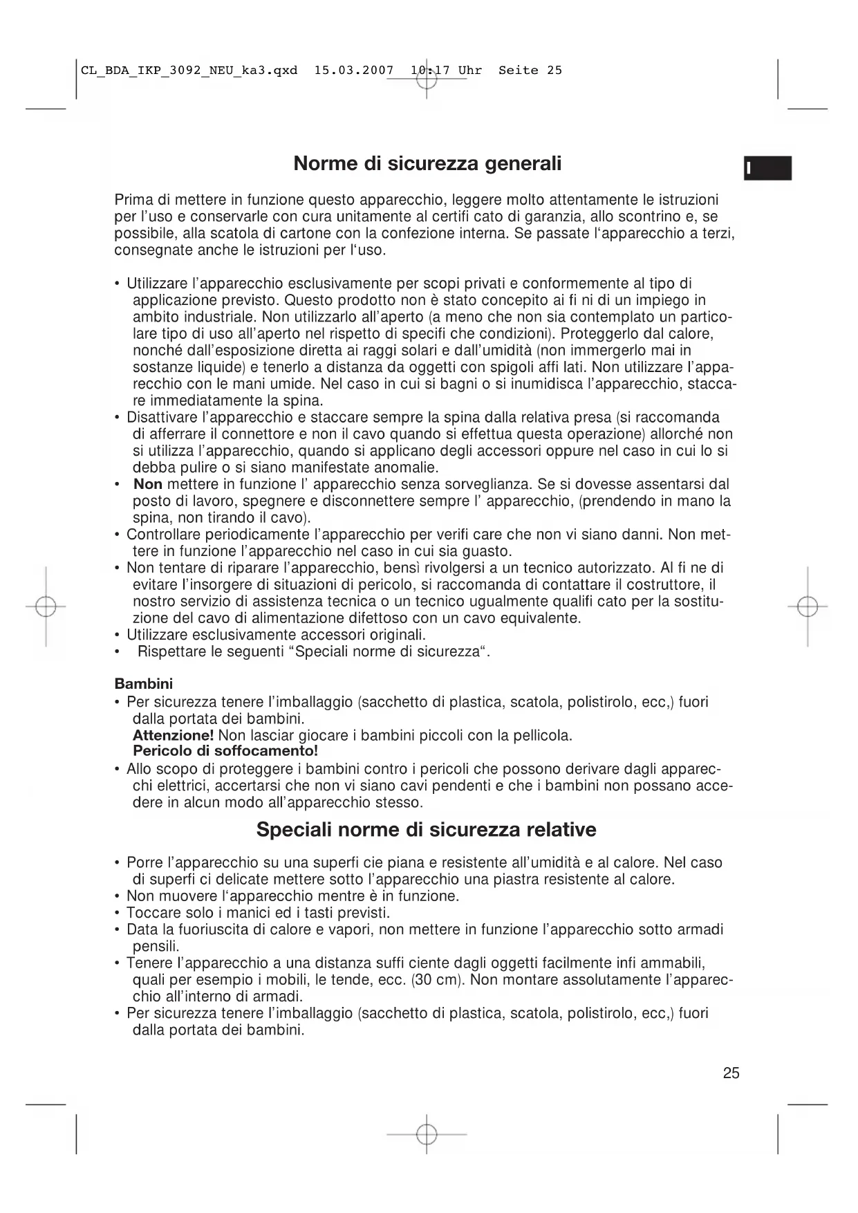 - Per sicurezza tenere l’imballaggio (sacchetto di plastica, scatola, polistirolo, ecc,) fuori dalla portata dei bambini. CL_BDA_IKP_3092_NEU_ka3.qxd 15.03.2007 10:17 Uhr Seite 2526