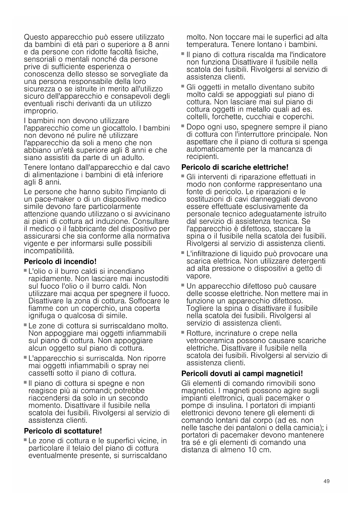Le personne che hanno subito l'impianto di un pace-maker o di un dispositivo medico simile devono fare particolaremente attenzione quando utilizzato o si avvicinano ai piani di cottura ad induzione. Consultare il medico o il fabbricante del dispositivo per assicurarsi che sia conforme alla normativa vigente e per informarsi sulle possibili incompatibilità.