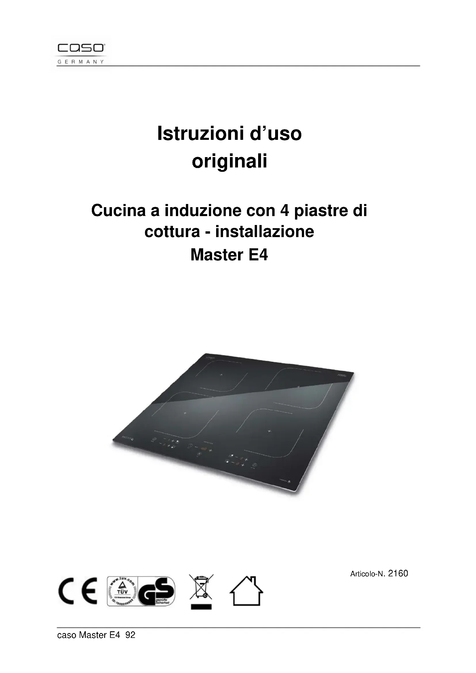Scarica le istruzioni per il tuo Padella in formato PDF gratuitamente! Trova il tuo manuale Master E4 - CASO e riprendi in mano il tuo dispositivo elettronico. In questa pagina sono pubblicati tutti i documenti necessari per l'utilizzo del tuo dispositivo. Master E4 del marchio CASO.