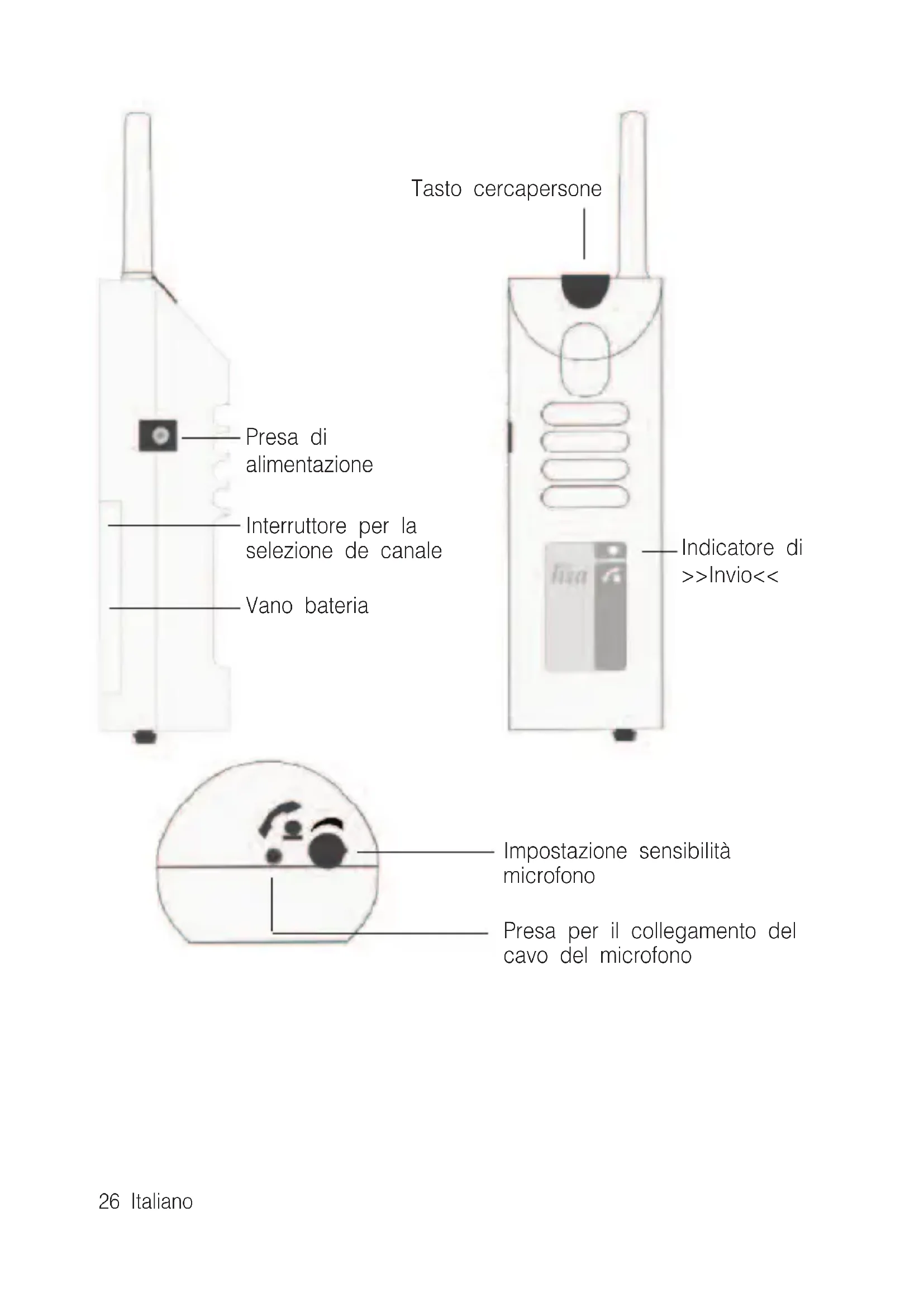 Premendo il tasting cercapersone si attiva, su agli ricevitore, una determinata sequenza di lampeggiamenti. Si possono così chiamare delle persone che si trovano in altre stanze. Questo tasting permetteanche di verificare il funzionamento dell'impianto, alla che via necessario collegare le relative linee di alimentazione.
