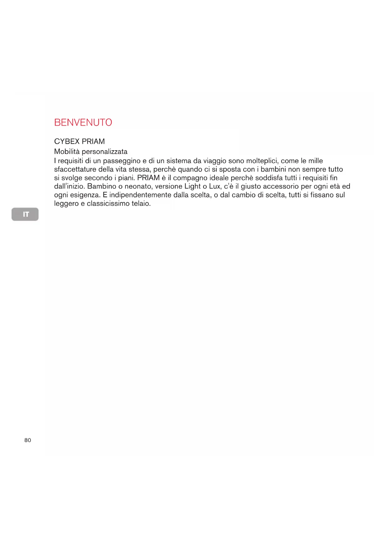 BENVENUTO I requisiti di un passeggino e di un sistema da viaggio sono molteplici, come le mille sfaccettature della vita stessa, perchè quando ci si sposta con i bambini non sempre tutto si svolge secondo i piani. PRIAM è il compagno ideale perchè soddisfa tutti i requisiti fin dall'inizio. Bambino o neonato, versione Light o Lux, c'è il giusto accessorio per ogni età ed ogni esigenza. E indipendentemente dalla scelta, o dal cambio di scelta, tutti si fissano sul leggero e classicissimo telaio. Mobilità personalizzata CYBEX PRIAMIT
