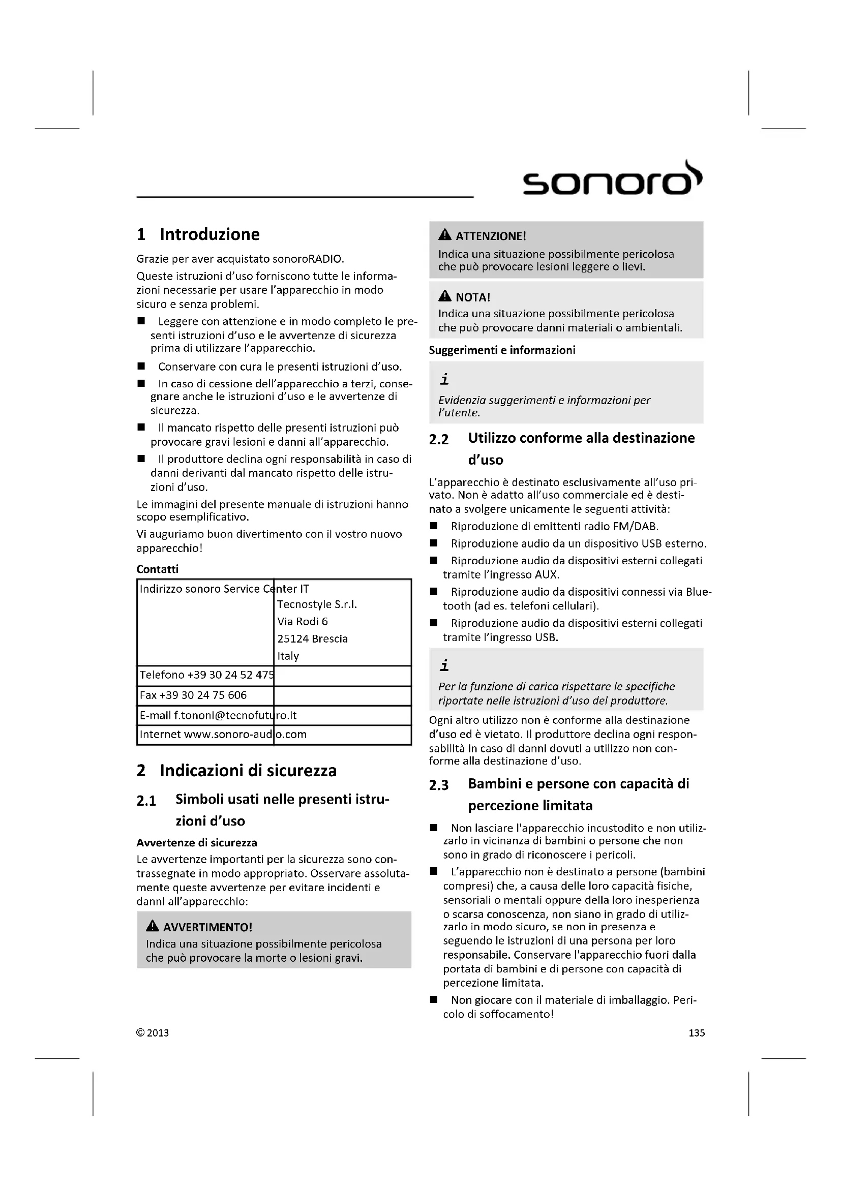 SO110 - Radio SONORO - Manuale utente e istruzioni gratuiti