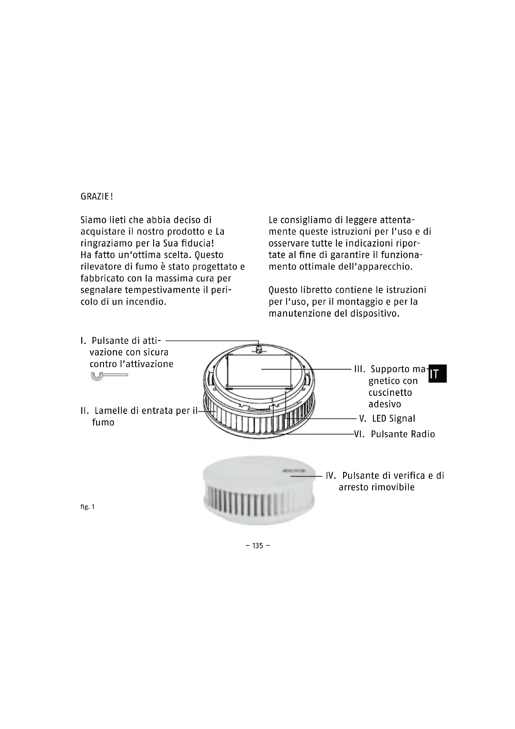 Si raccomanda di utilizzare l’apparec- chio esclusivamente per il rilevamento di fumo e per la segnalazione di aumento di temperatura in immobili, QRQFK«SHUODWUDVPLVVLRQHGHO segnale d’allarme!