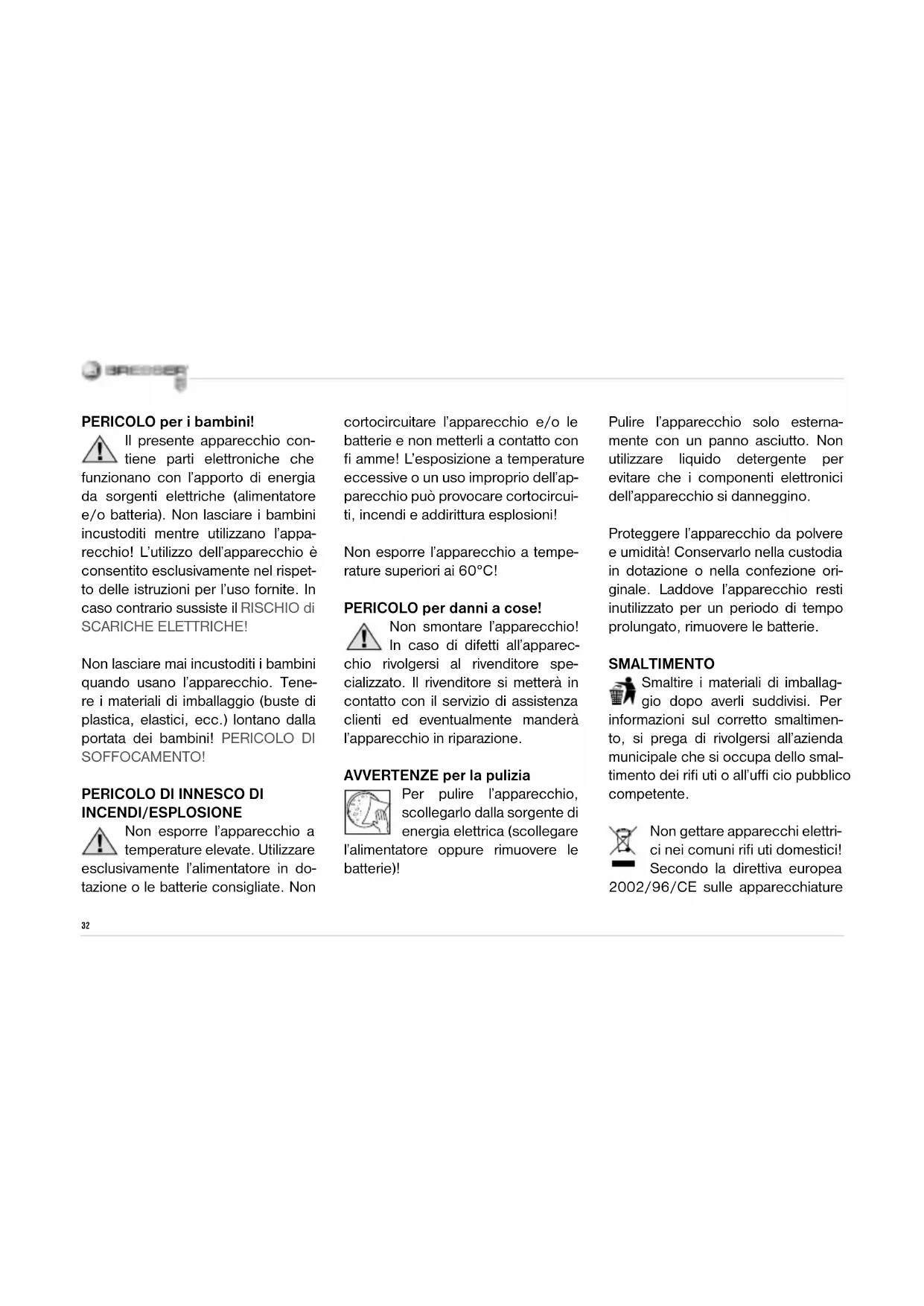 - luce bianca, rossa e gialla Con il tasto “MODE” si può anche spegnere la luce completamente. Per regolare la luminosità si usano i tasti “+” e “-” dell’apparecchio. Tene- re premuti i tasti! Realizazzione di immagini Con lo scatto della fotocamera (1) puoi acquisire immagini e memoriz- zarle in formato BMP.