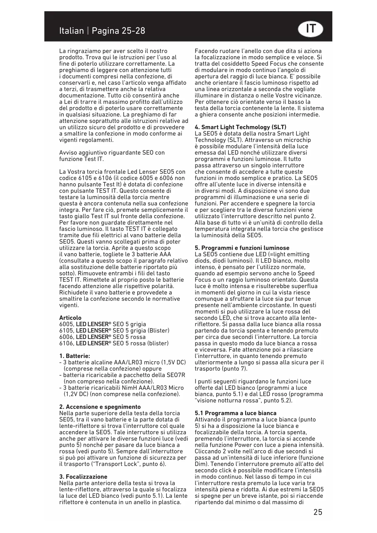 SEO5 - Torcia Ledlenser - Manuale utente e istruzioni gratuiti