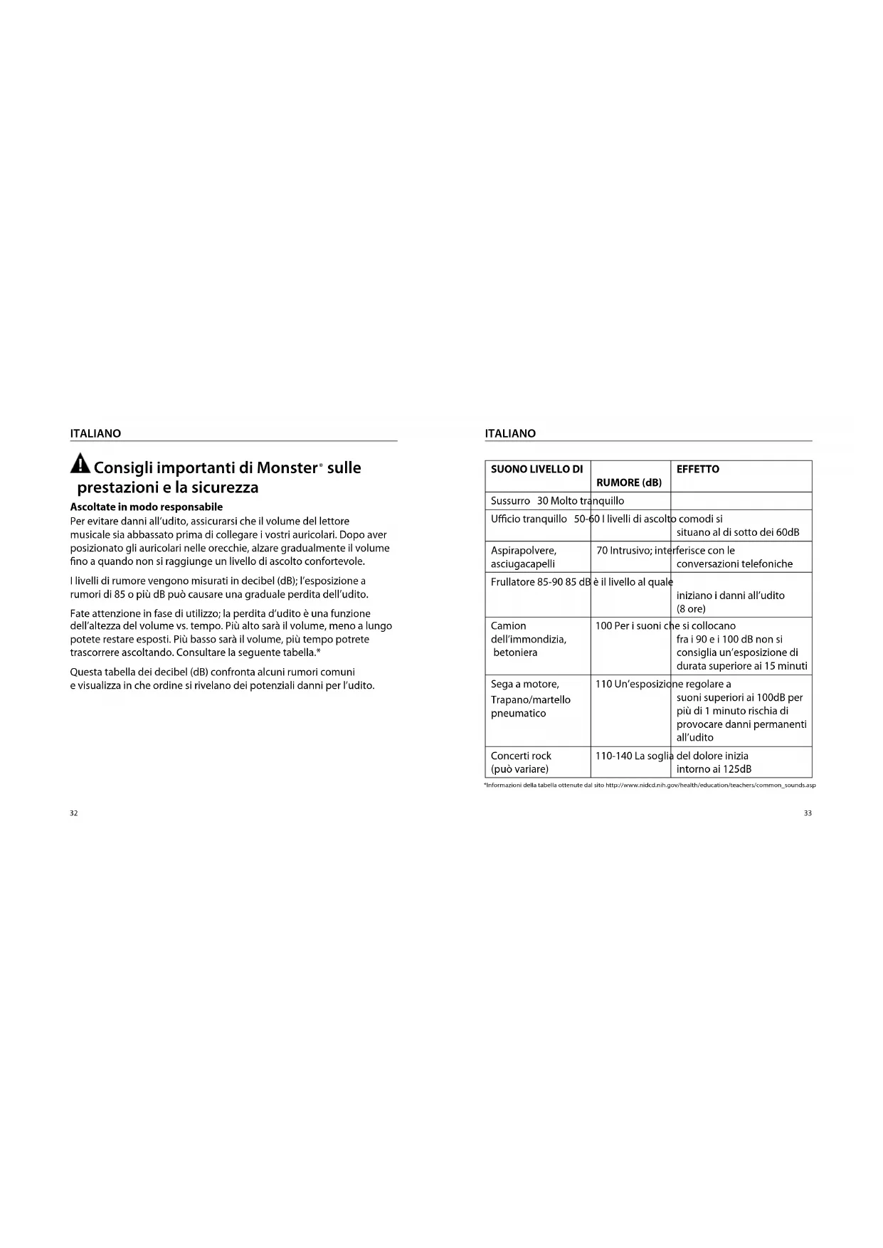 Per ulteriori Informazioni sugli effetti che i rumori forti hanno suite,votre oreche potte consultare la tabella a sito