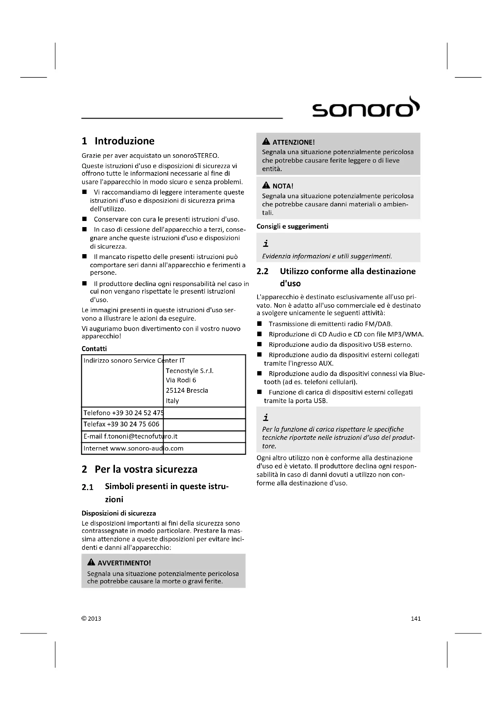 In caso di reclami, rivolgersi al nostro Servizio Clienti. I dati di contatto sono ( «»Contatti« a pag. 141) o su www.sonoro-audio.com.