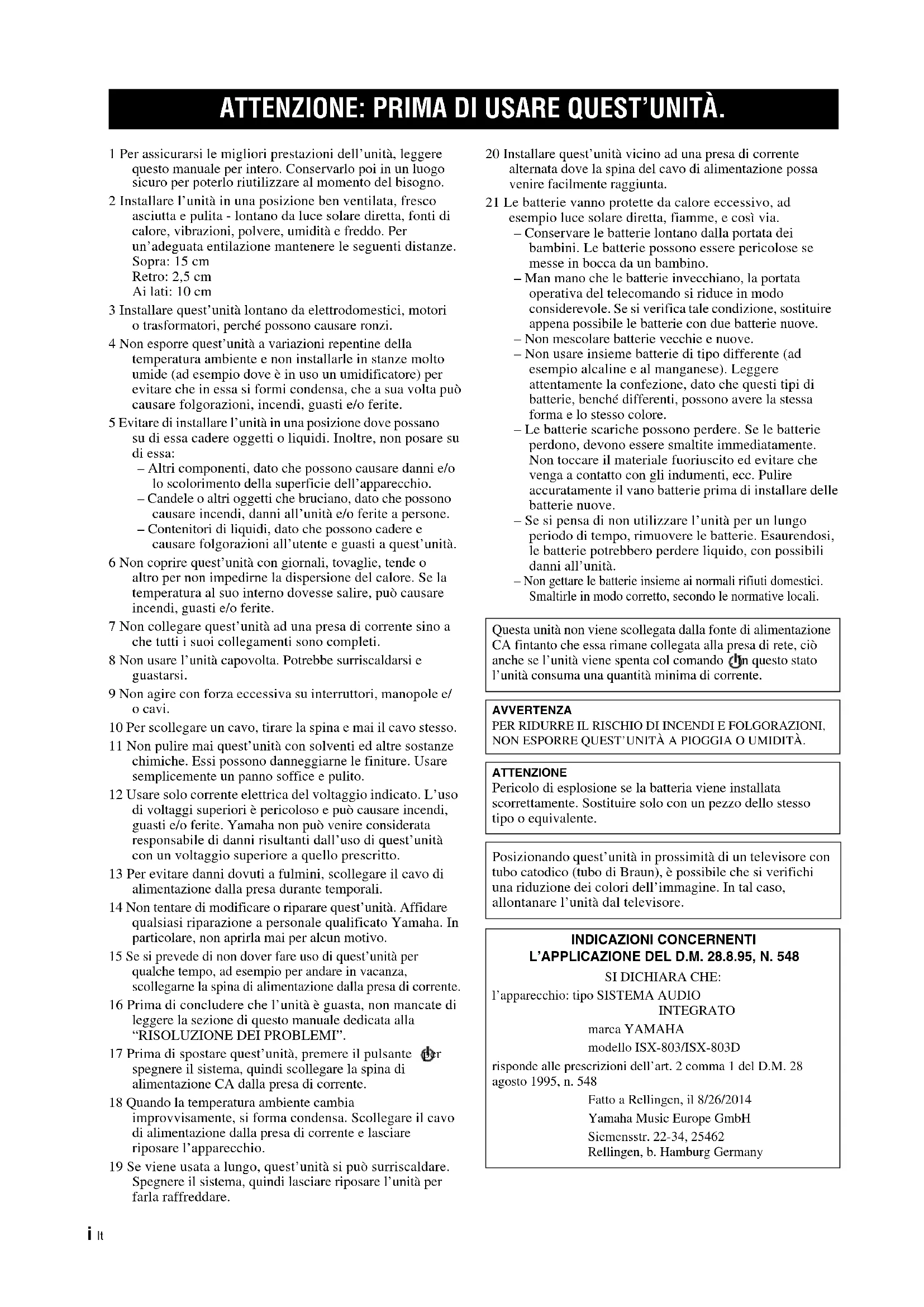 MANUALE UTENTE Restio ISX803D YAMAHA